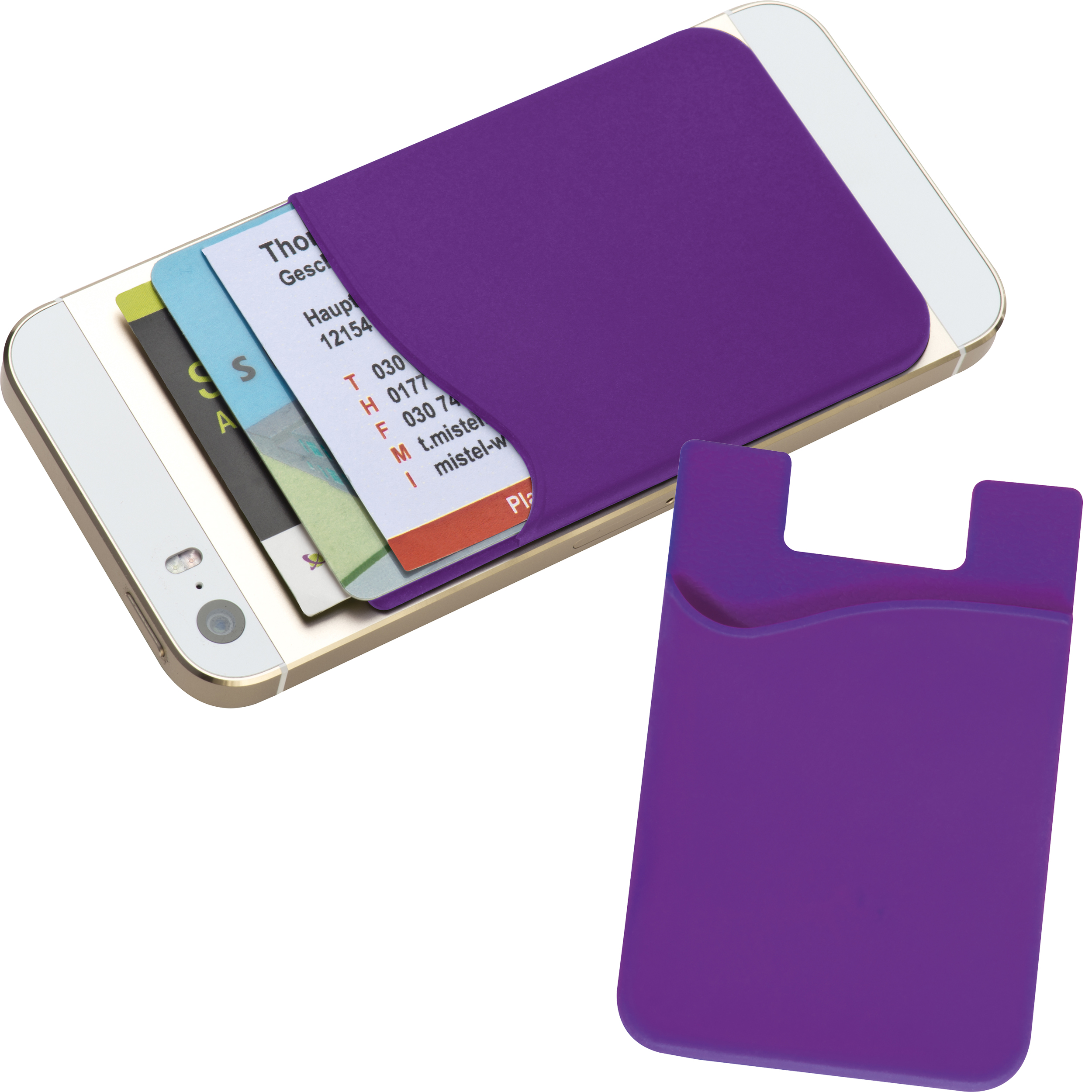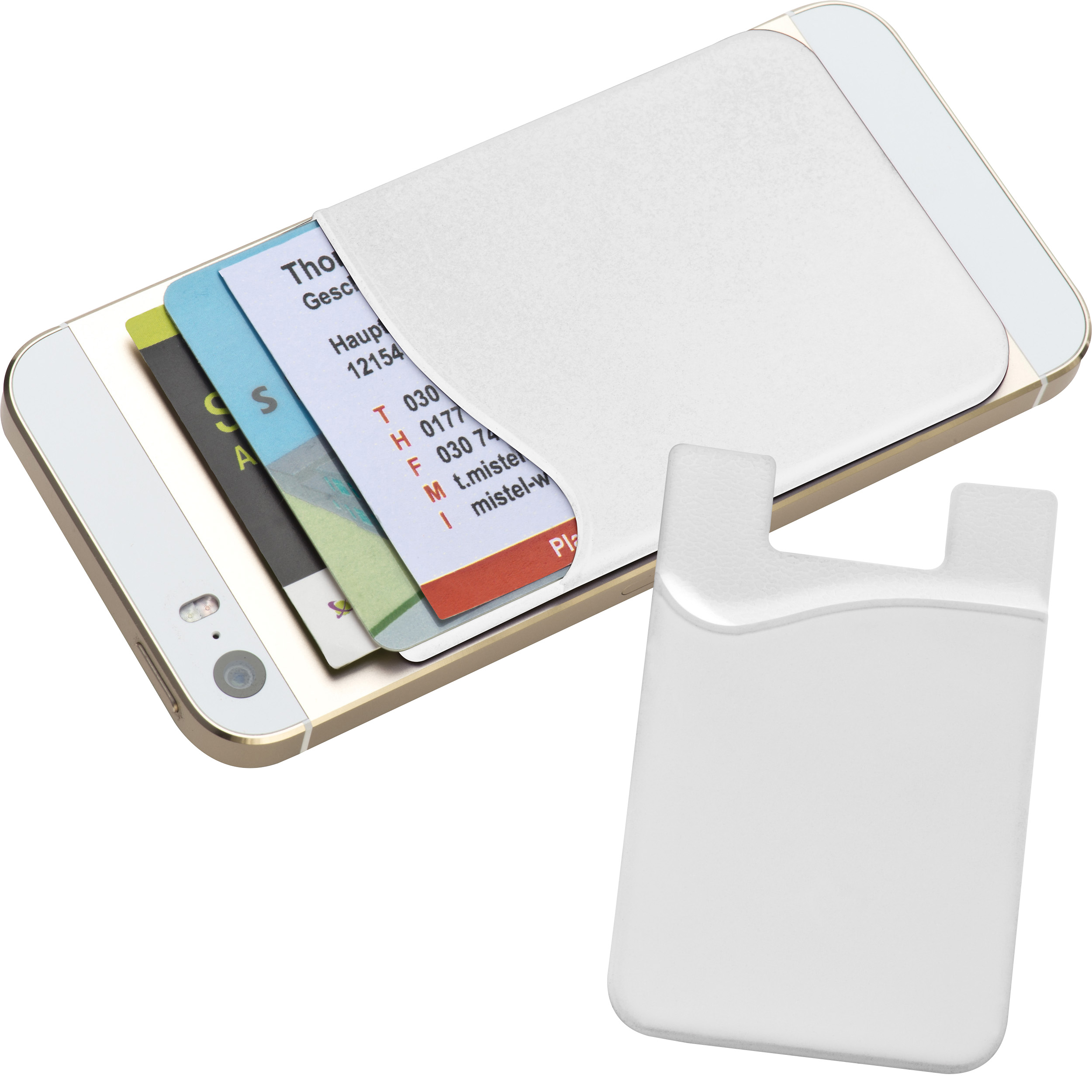 Kartenhalter aus Silikon zum Aufkleben auf die Rückseite Ihres Smartphones. Hier finden Sie Platz für Visitenkarten, Kreditkarten, Geld und vieles mehr. Ihre Werbung wird direkt auf die Silikontasche gedruckt (Mögliche Druckfarben sind weiß oder schwarz).