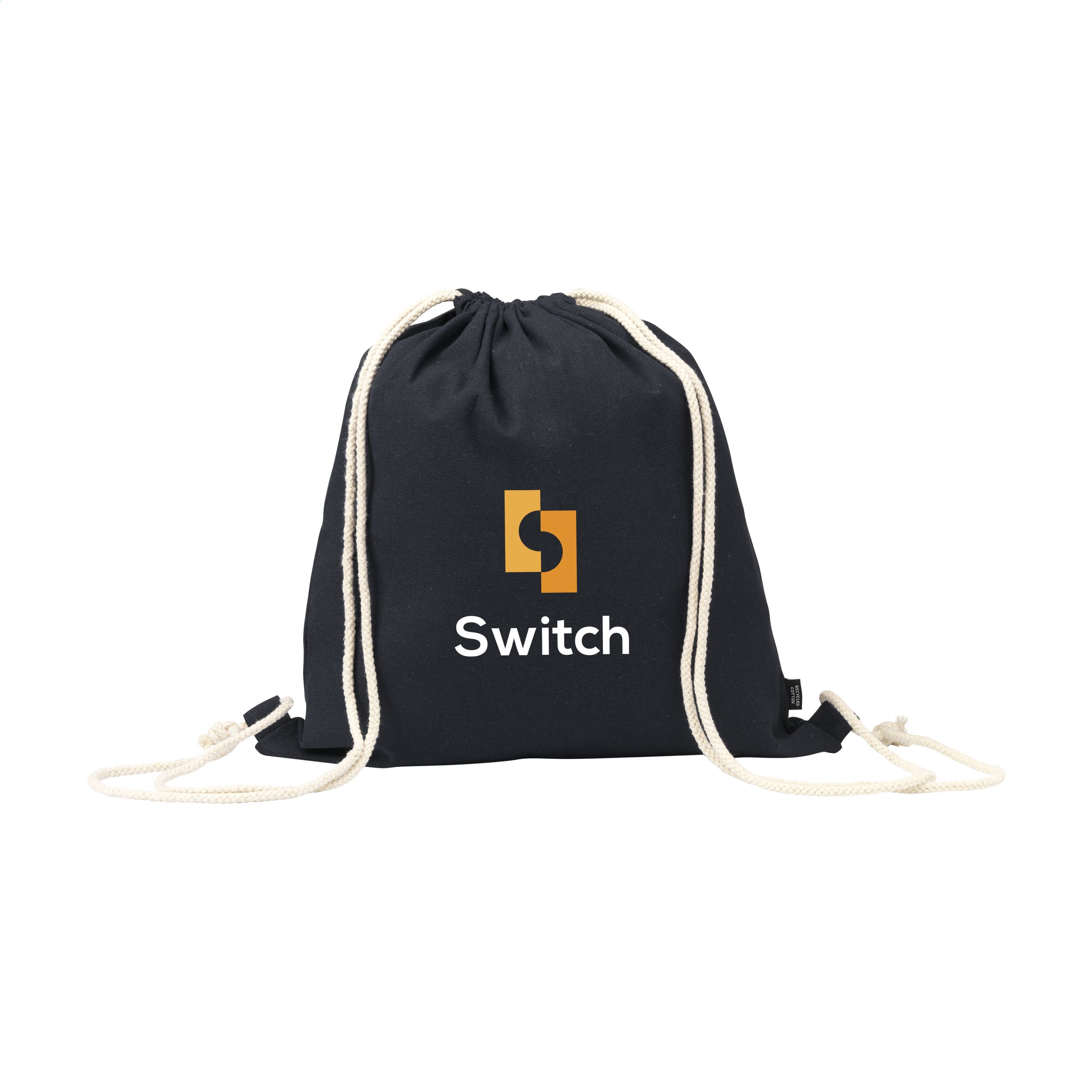 WoW! Rucksack mit Kordelzug aus 80% recycelter Baumwolle und 20% recyceltem Polyester (150 g/m²). GRS-zertifiziert. Recyceltes Material insgesamt: 100%. Fassungsvermögen ca. 7 Liter.