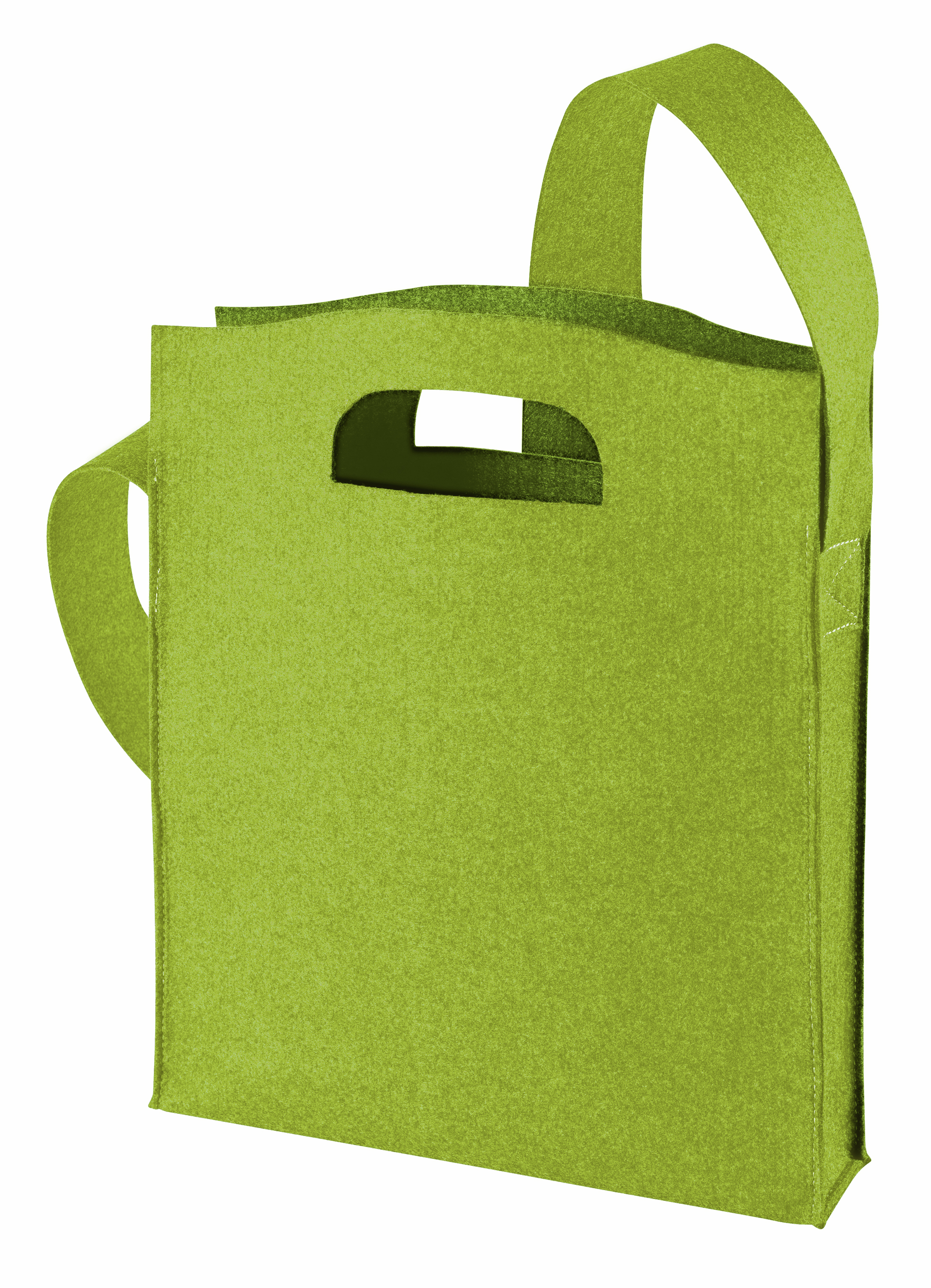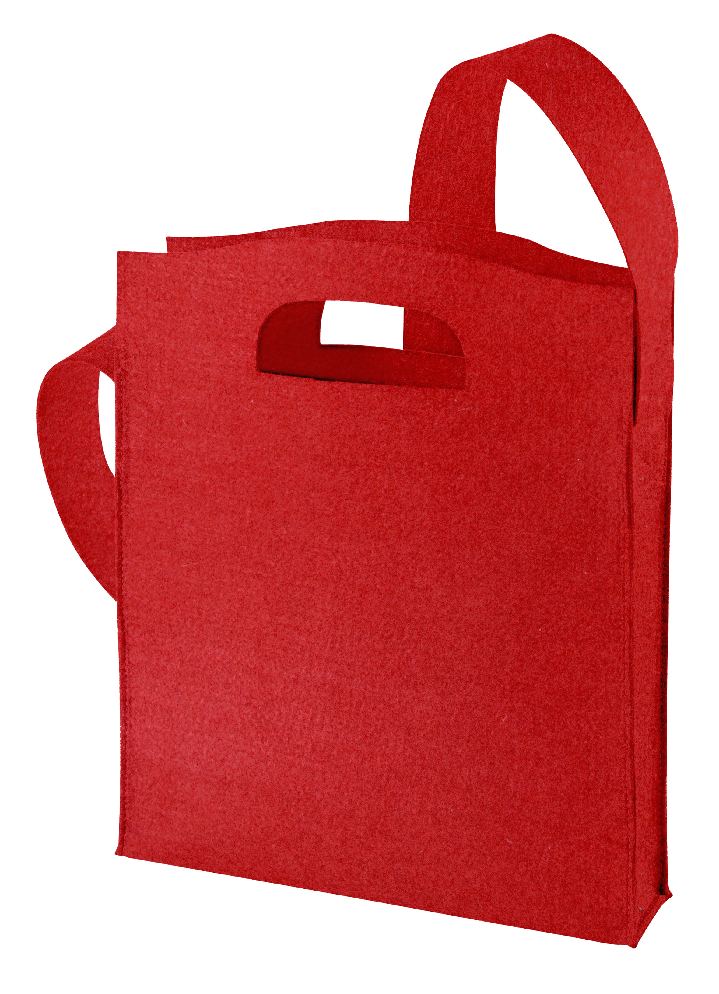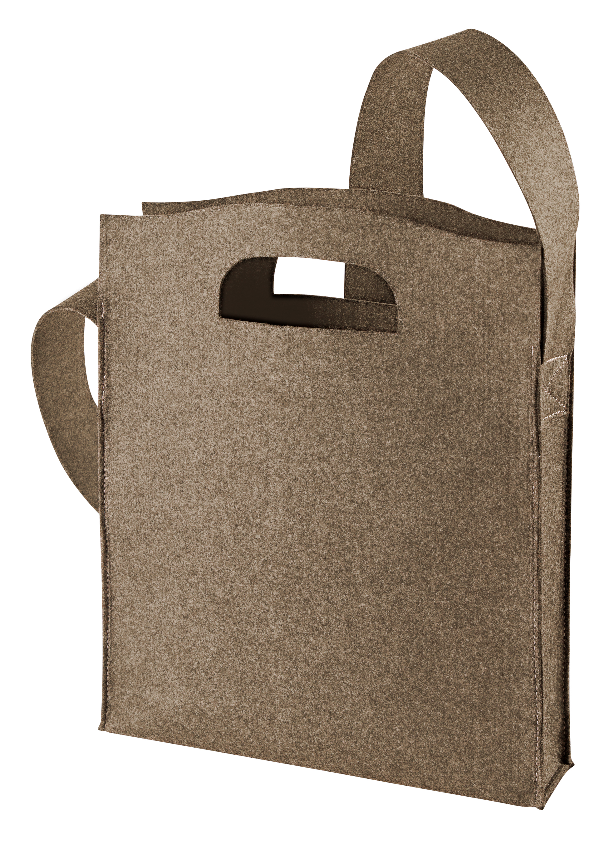 Große Einkaufstasche aus Filz mit robusten Henkeln aus Kunstleder. Hiermit meistern Sie jeden Großeinkauf. Ihre Werbung wird auf eine Seite der Tasche gedruckt.