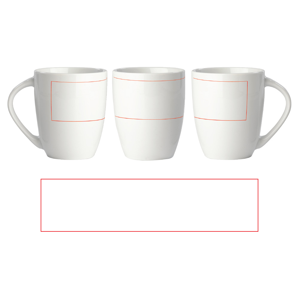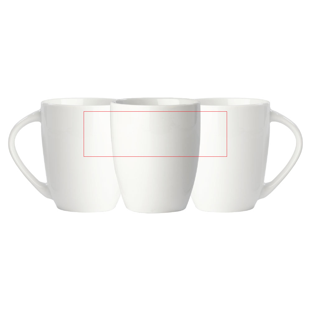 Weißer Porzellanbecher im bauchigem, konischen Design mit großem Henkel. Ein Topseller unter den Bechern.