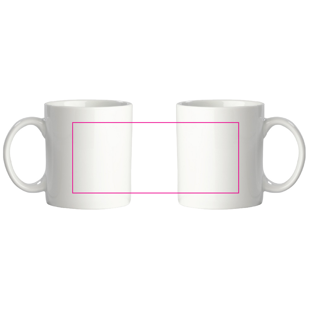 Gerader Porzellanbecher mit einer großen Druckfläche. Egal ob Rundumdruck oder ein Druck auf beiden Seiten, der Preis bleibt gleich.