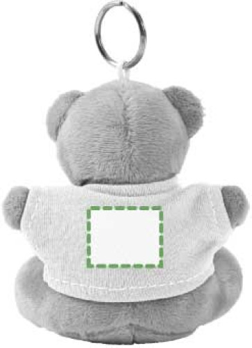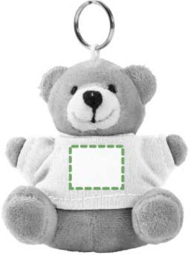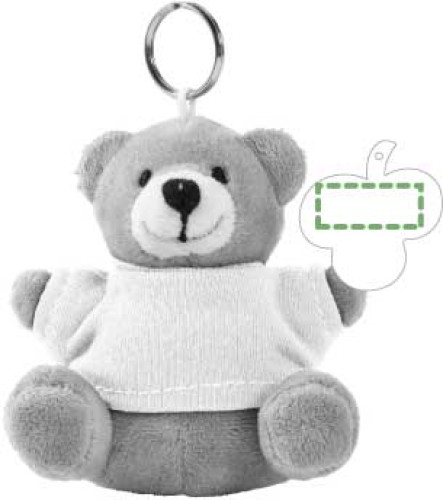 Schlüsselring mit Plüsh Teddybär, der ein T-Shirt trägt. 100% Baumwolle. Die Augen sind genäht.