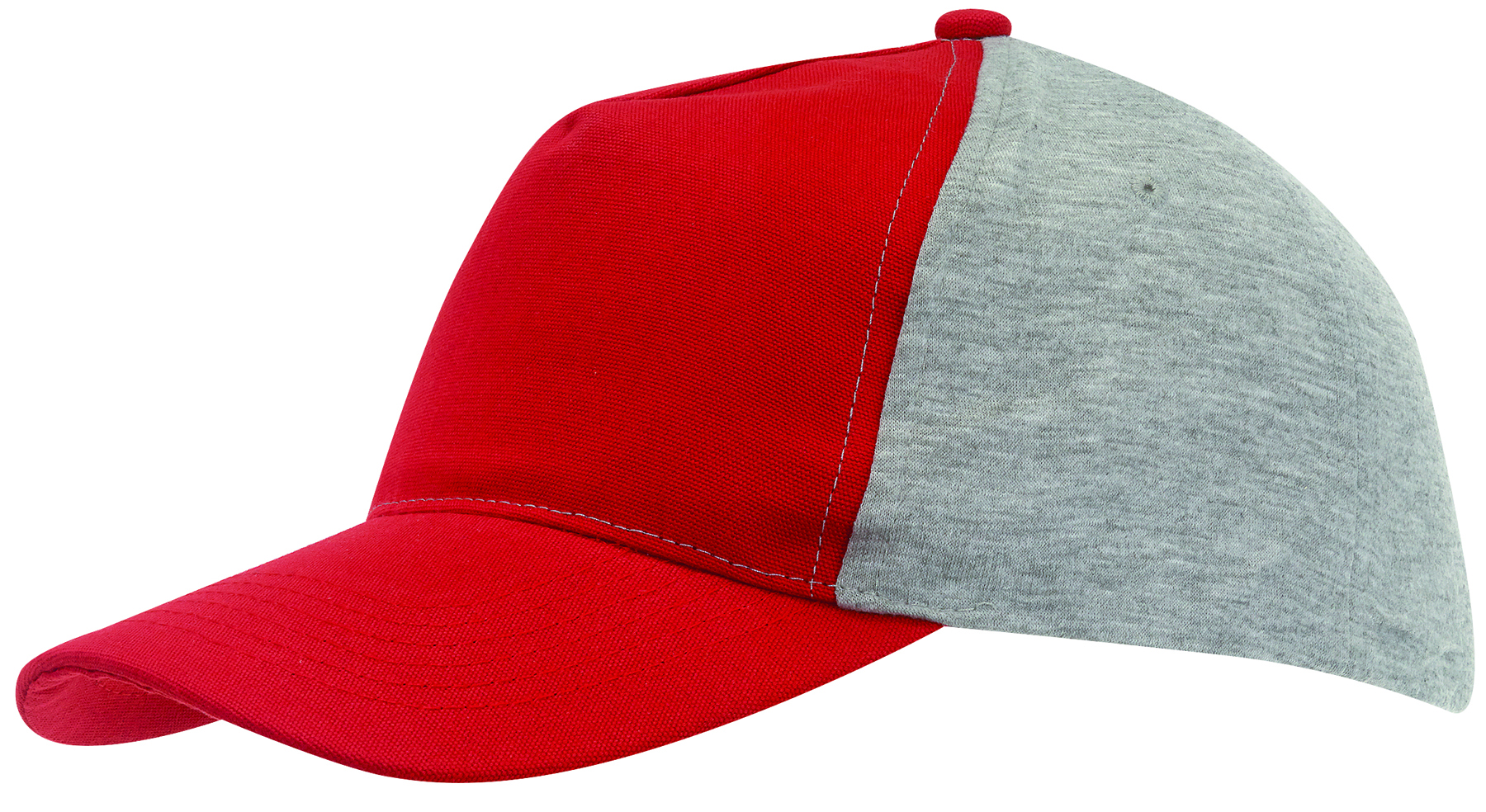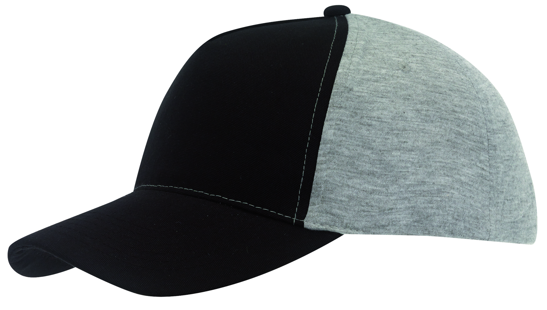 5-Panel-Baseball-Cap UP TO DATE : Visier sowie verstärktes Frontsegment in Canvas-Optik, übrige Segmente aus Jersey, 4 gestickte Luftlöcher, farbig abgesetzter und größenverstellbarer Klettverschluss am Hinterkopf