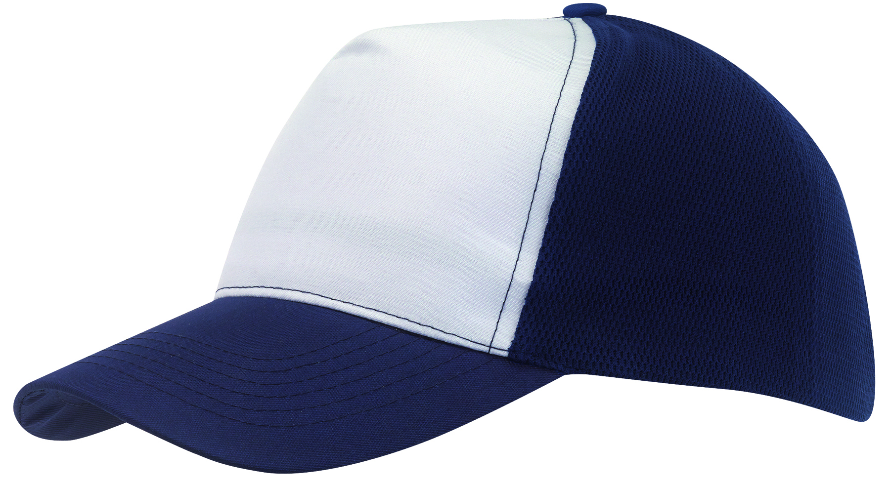 5-Panel-Baseball-Cap BREEZY , 2-farbig: gut zu bedruckendes verstärktes Frontsegment, übrige Segmente mit Netzstoff, größenverstellbarer Klettverschluss am Hinterkopf