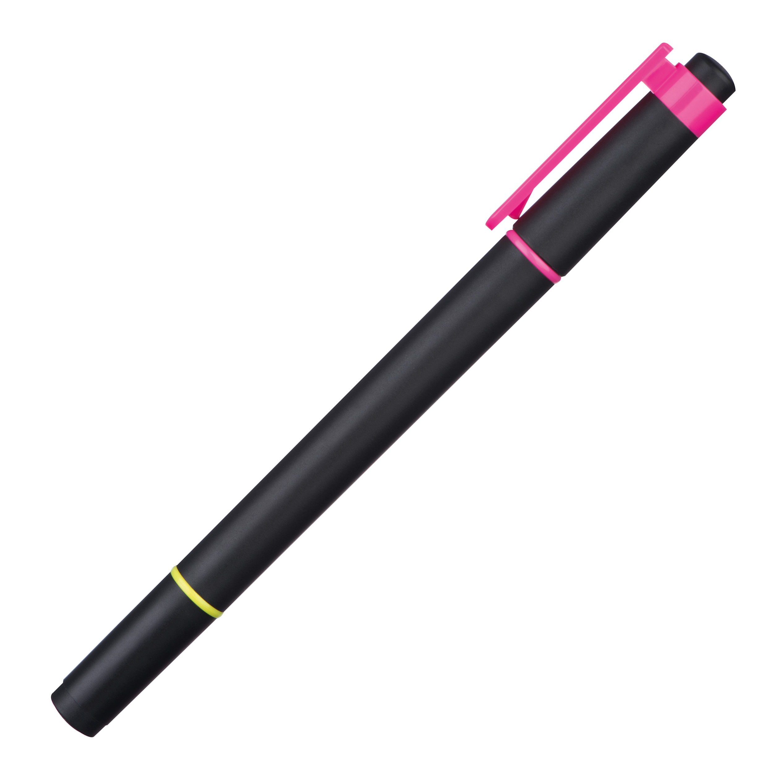 2 farbiger Textmarker mit einem Marker in neongelb, der andere in neonpink, garantiert einfaches und langes Markieren. Ihre Werbung wird auf das Mittelstück gedruckt.