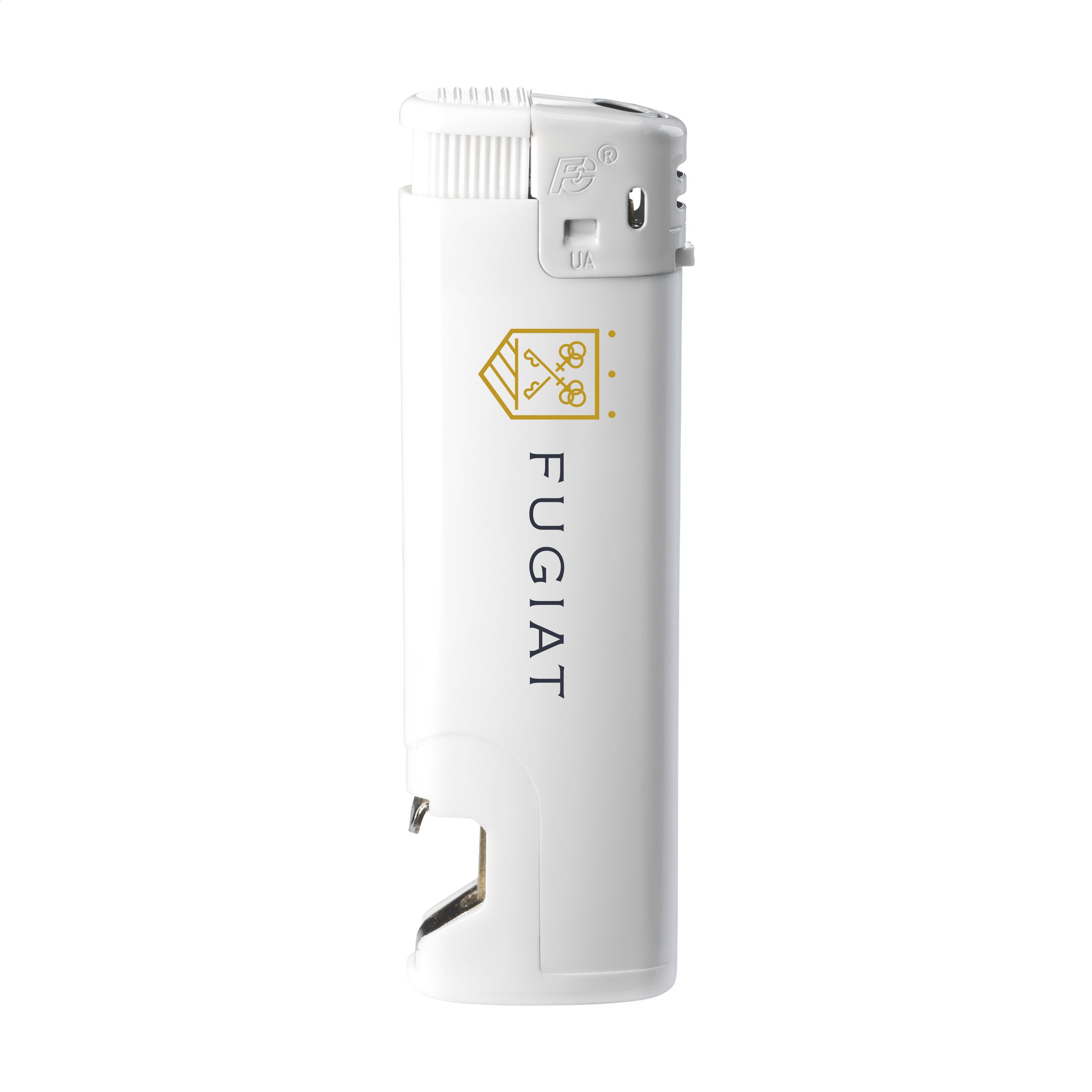 Schlankes, elektronisches Feuerzeug der Marke Flameclub®. Mit nützlichem Flaschenöffner und Flammenregler. Nachfüllbar. Mit Kindersicherung. NEN-zertifiziert: EN13869. TÜV-zertifiziert und ISO-zertifiziert: ISO9994. Feuerzeug wird nur mit Aufdruck geliefert.