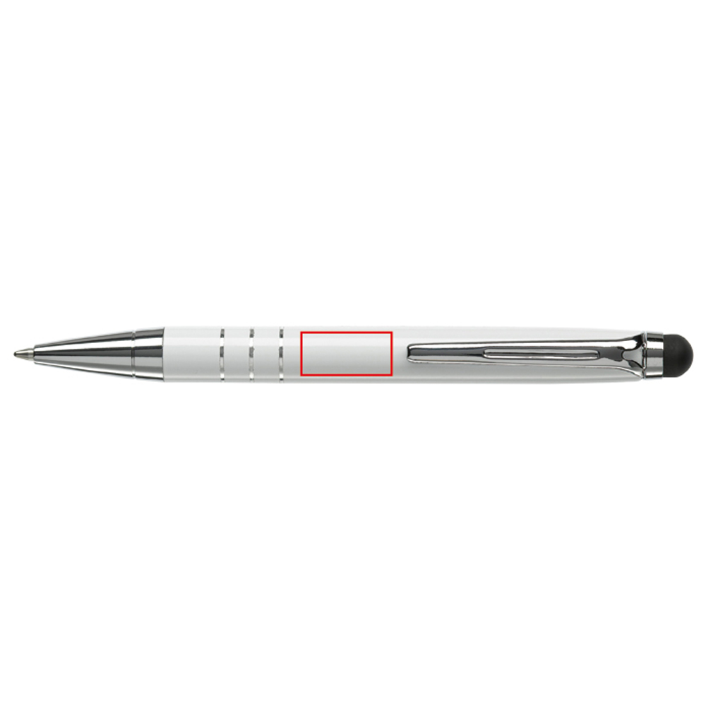 Kleiner Aluminium Drehkugelschreiber mit Stylus. Blauschreibend. Ideal für Smartphones und Tablet PC's.