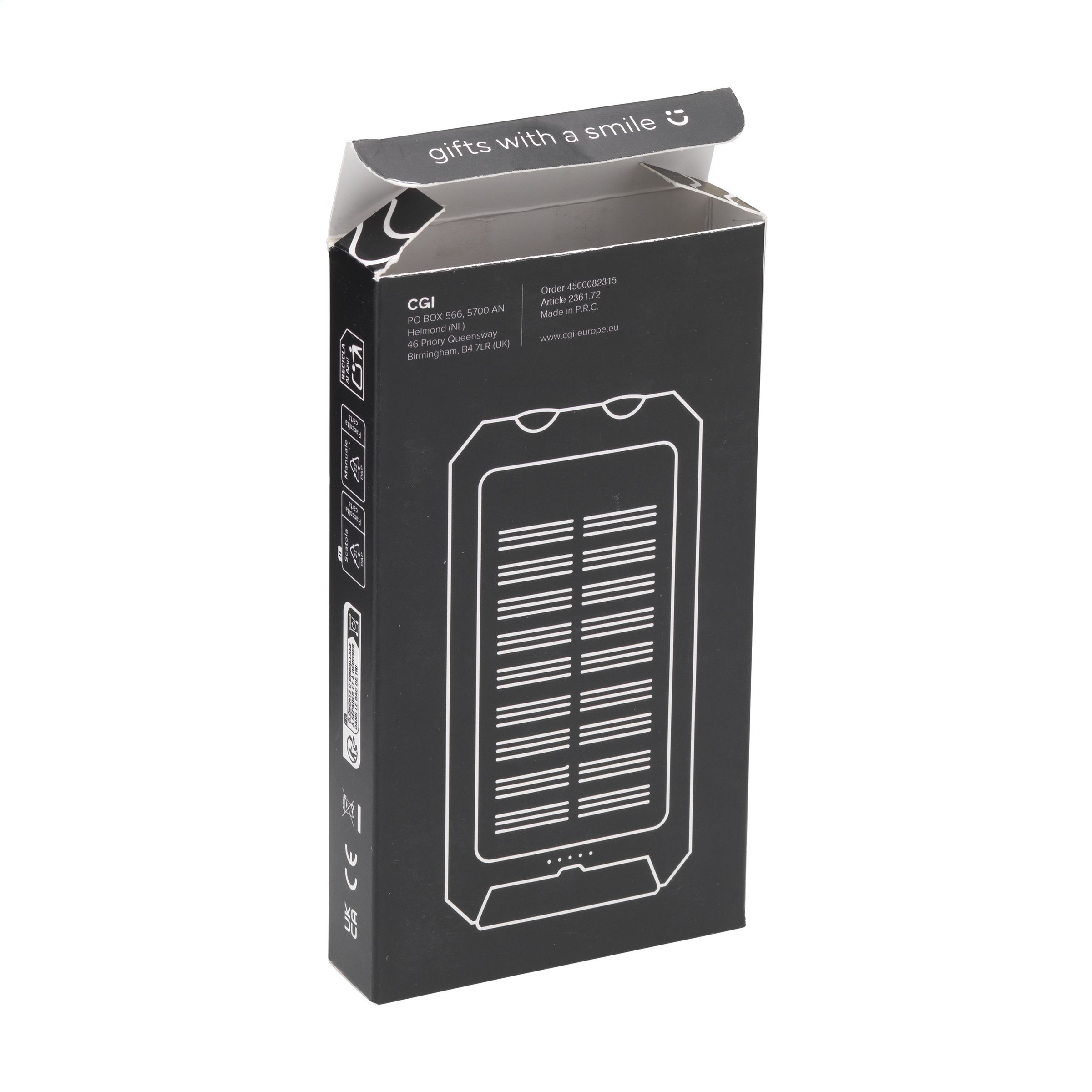 Robuste Outdoor-Solar-Powerbank mit 8.000 mAh und einem Gehäuse aus recyceltem ABS mit schützenden Silikonwülsten an den Ecken. Mit Solarpanel, integriertem Kompass, LED-Anzeigeleuchten, LED-Taschenlampe und Karabiner. Spritzwassergeschützt und staubgeschützt. Geeignet zum Aufladen der meisten gängigen Smartphones und anderer Geräte. Eingang: Typ-C DC5V/2.1A. Ausgang: Typ-C DC5V/2.1A. 1 x USB-A-Anschluss und 2 x USB-C-Anschluss. Eingang Solar: 200 mAh. Solare Ladezeit ca. 40 Stunden. Kann über das Stromnetz oder das Solarpanel geladen werden. Das ideale, vielseitige Ladegerät für Outdoor-Aktivitäten. Inklusive USB-C/USB-C-Ladekabel und Gebrauchsanweisung. RCS-zertifiziert. Gesamtes recyceltes Material: 17%. Pro Stück in einer Verpackung.