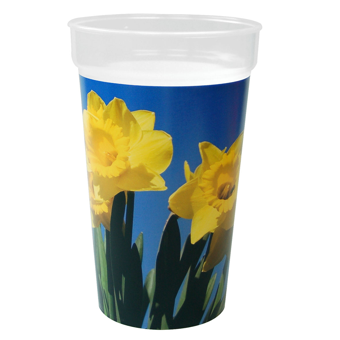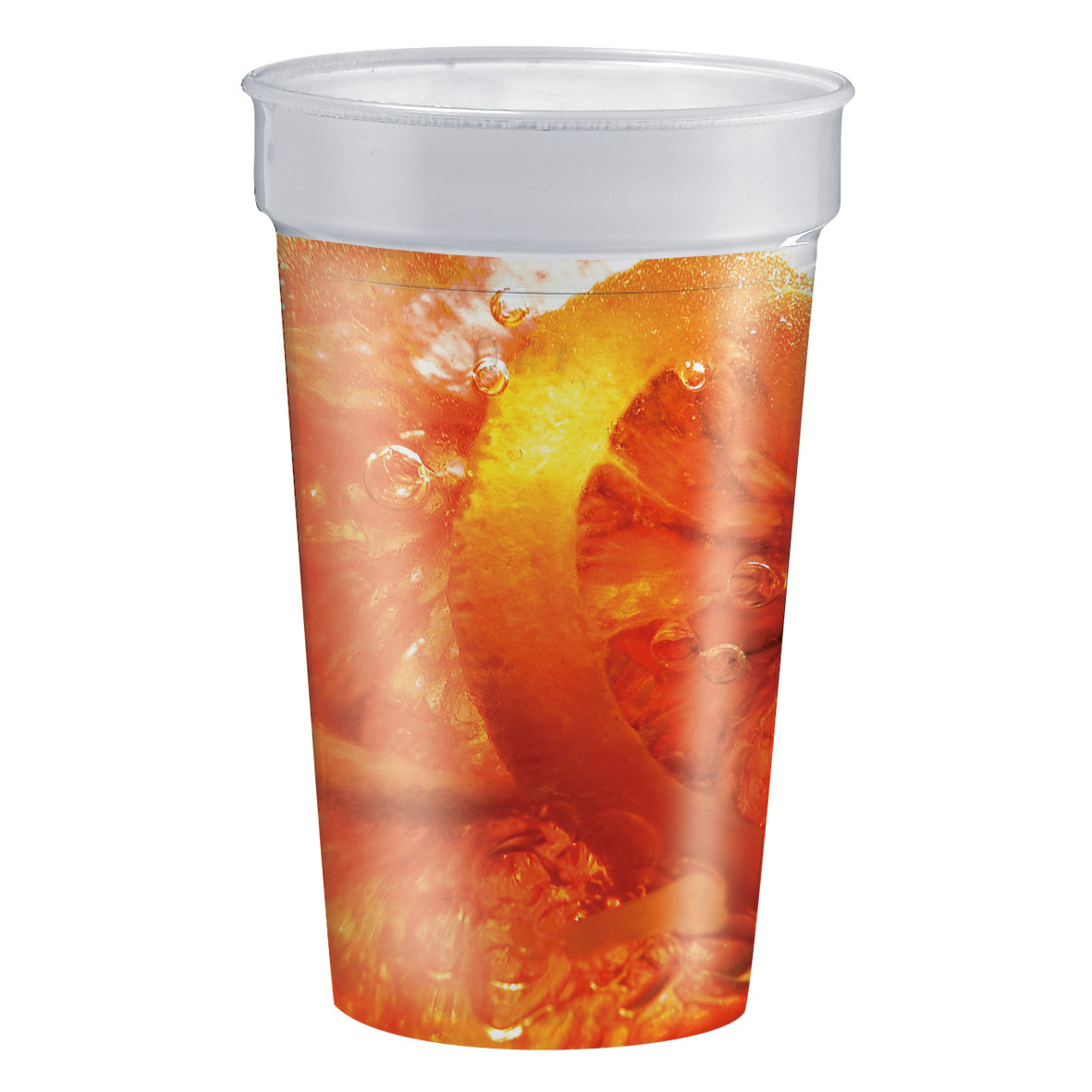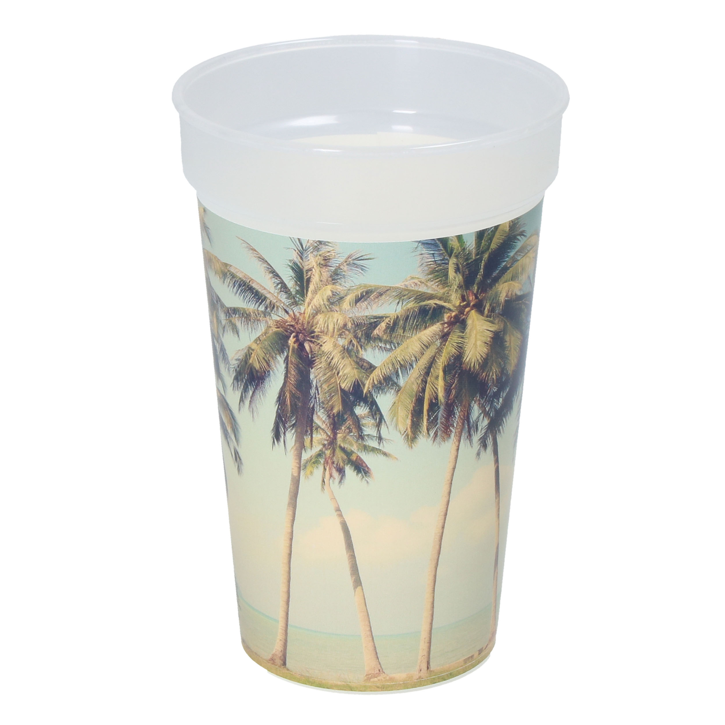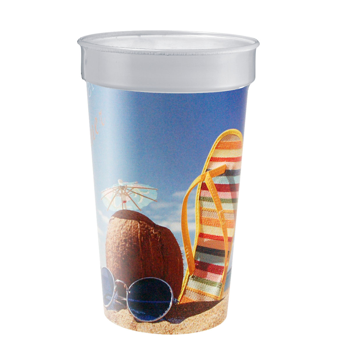 Stapelbarer, bruchfester Mehrwegbecher aus transparentem Kunststoff mit Füllmarkierung. IMould-Veredelung möglich. Füllmenge: 0,4 Liter.