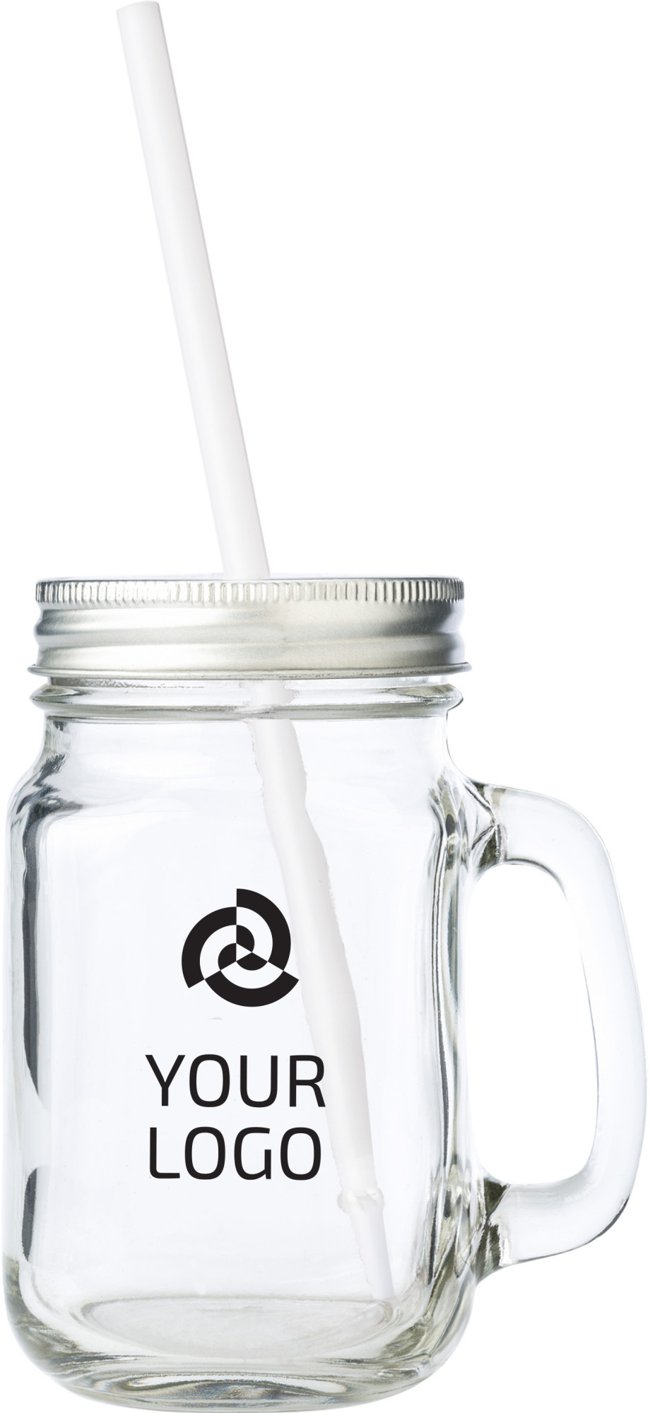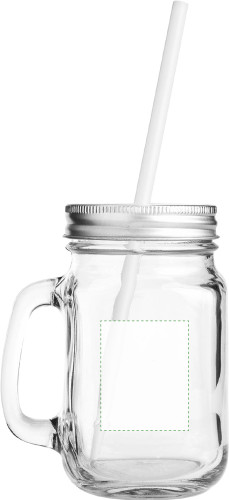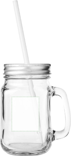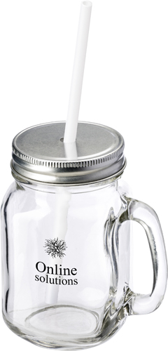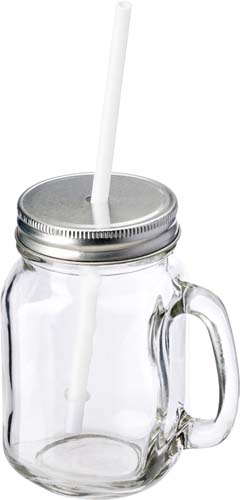 Trinkbecher aus Glas, mit Griff, Strohhalm und Deckel mit Öffnung für einen Strohhalm, Inhalt ca. 480 ml (Verkauf ausschließlich in vollen Verpackungseinheiten / 32 Stück, Preis pro Stück).