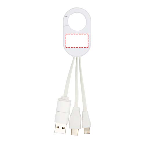 Das Troop 4-in-1-Ladekabel aus recyceltem Kunststoff verfügt über USB-A- und Typ-C-Eingänge in Kombination mit kombinierten Typ-C- und Lightning/Micro-USB-Ausgängen, mit denen die meisten Smartphones, Kameras, Powerbanks und Ohrhörer aufgeladen werden können. Der integrierte Karabinerhaken ermöglicht eine einfache Befestigung an einer Tasche oder einem Schlüsselanhänger, so dass Sie Ihre Geräte immer und überall mit Strom versorgen können.