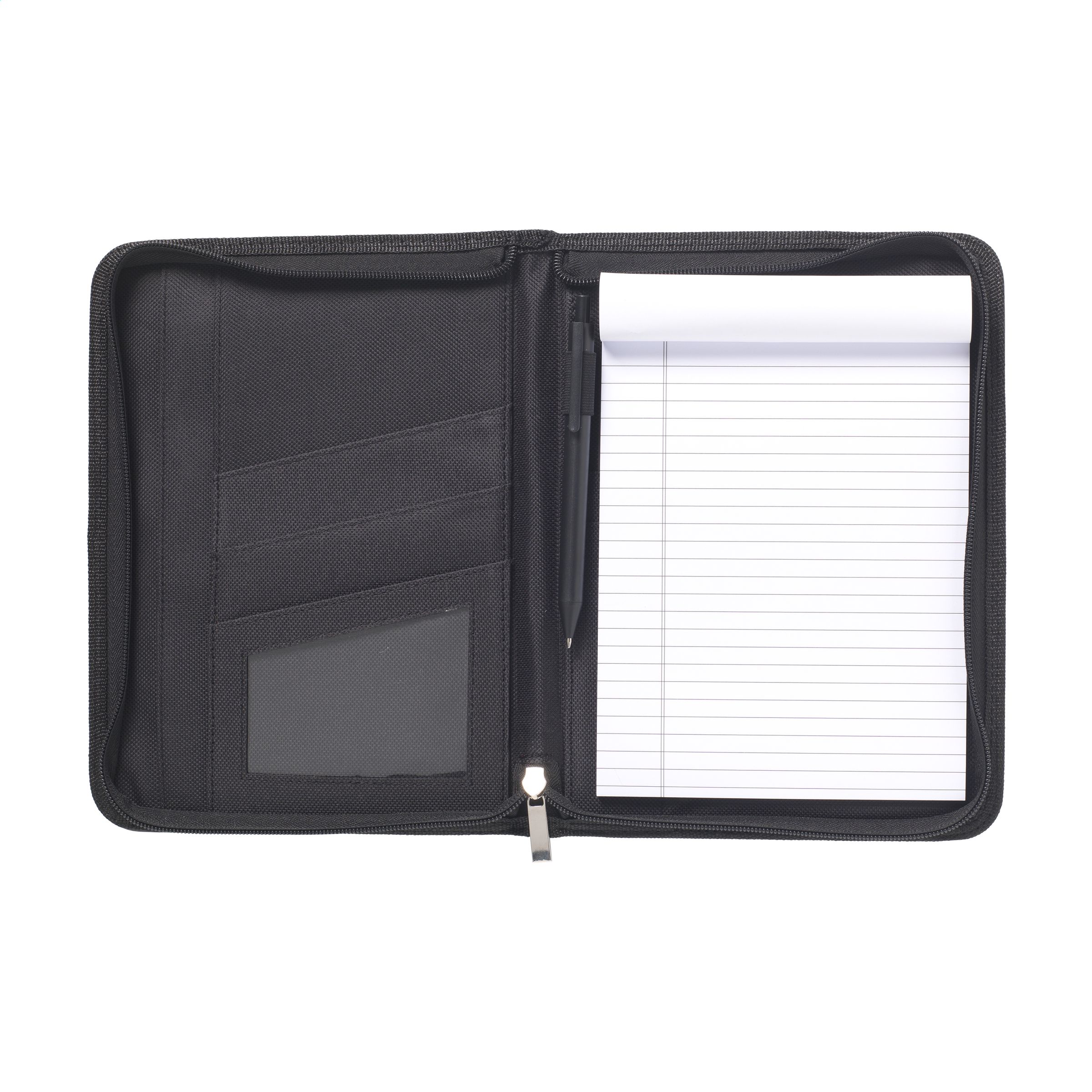 Schreibmappe/Dokumentenmapp aus fein gebundenem Leder, im DIN A5-Format. Mit diversen Einsteckfächern und Rundum-Reißverschluss. Inkl. Schreibblock und Kugelschreiber. Pro Stück in einer Verpackung.