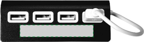 USB-Hub aus Aluminium mit 4 USB (2.0) Anschlüssen, Output: 5V.