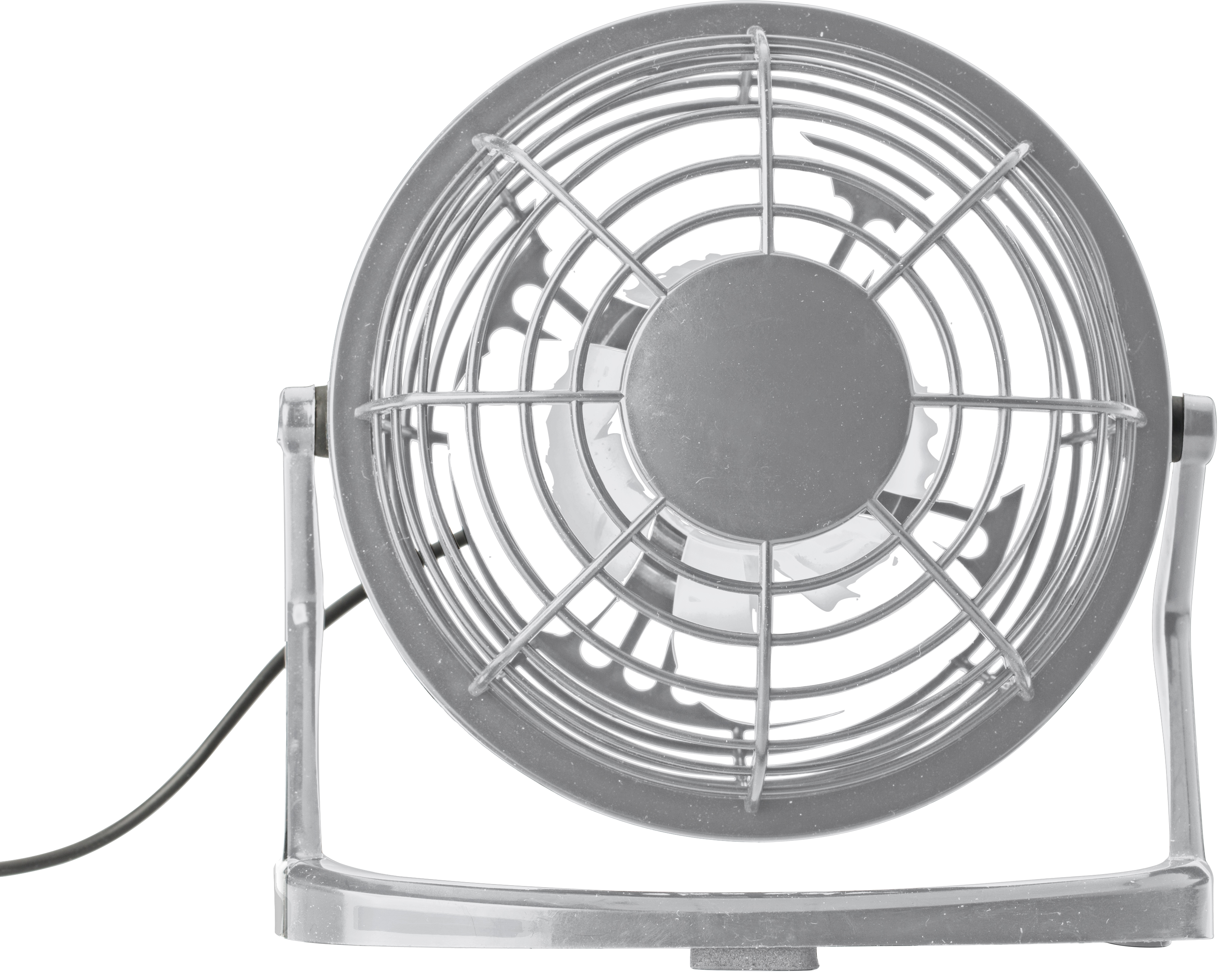 USB-Ventilator aus Kunststoff, inklusive Tischständer und Anschlusskabel (USB 2.0, ca. 93 cm lang).