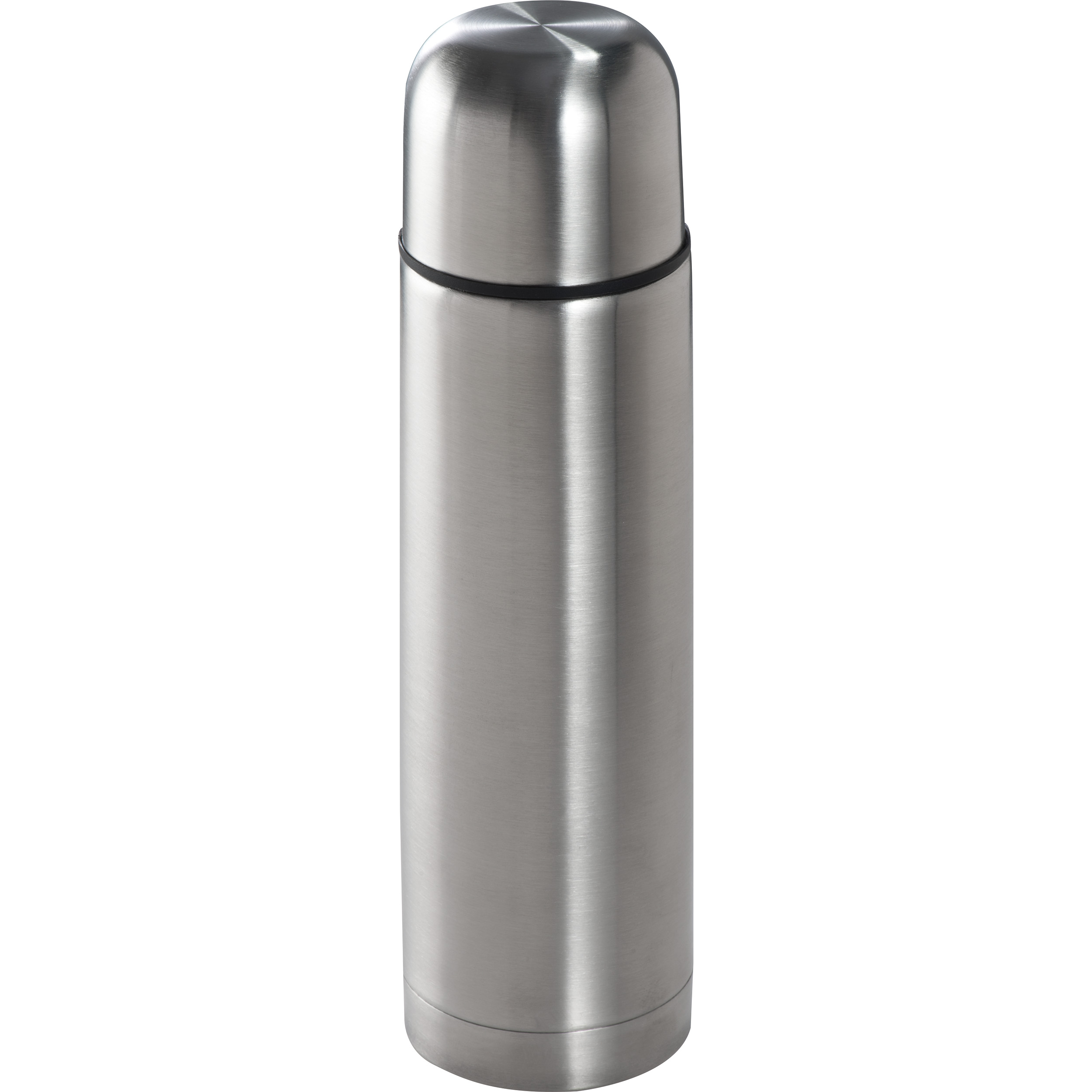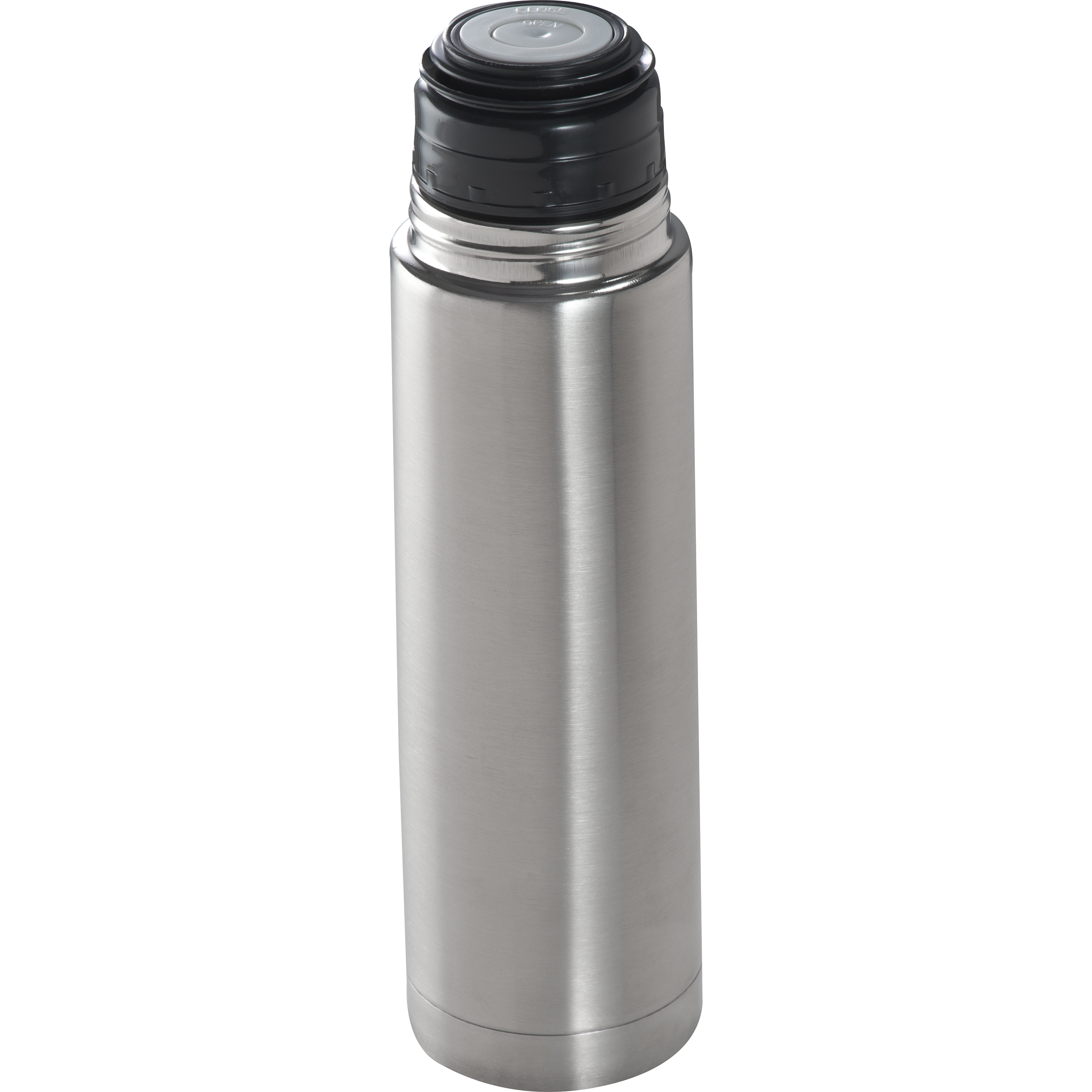 Doppelwandige Vakuum-Isolierkanne aus Edelstahl mit 500 ml Fassungsvermögen, Schnellverschluss und Metallbecher. Ihre Werbung lasern wir auf die Kanne.