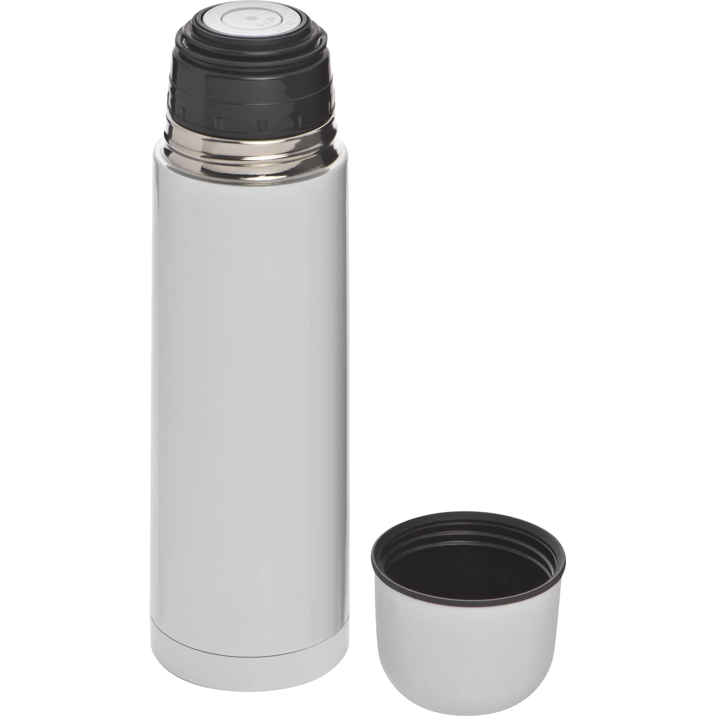Doppelwandige Vakuum-Isolierkanne aus Edelstahl mit 500 ml Fassungsvermögen, Schnellverschluss und Metallbecher. Ihre Werbung wird auf die Kanne gelasert.