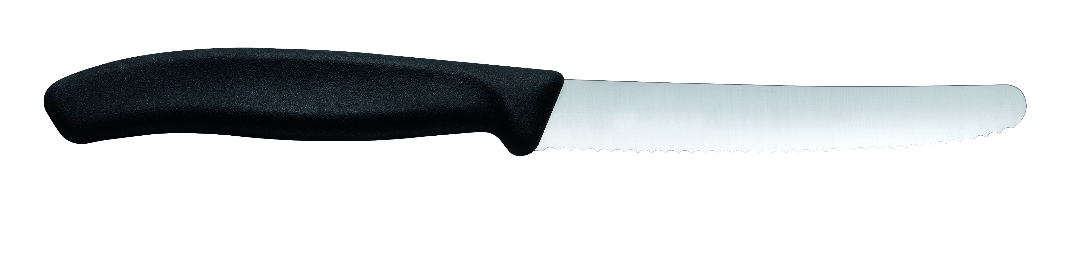 Hochqualitatives Tischmesser der Marke Victorinox Swiss Classic. Die qualitative, hochwertige Stahlklinge (11 cm) ist gekerbt und hat eine runde Kante. Mit Kunststoffgriff. Durch die ergonomische Form liegt dieses Messer sehr schön in der Hand. Zur Verwendung beim Essen einer Mahlzeit oder bei einer Menge Aufgaben in der Küche. Spülmaschinengeeignet. Exklusive Victorinox-Schutzüberzug aus Kunststoff. Dies ist separat erhältlich (nr. 0692).