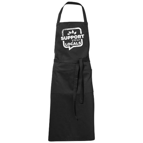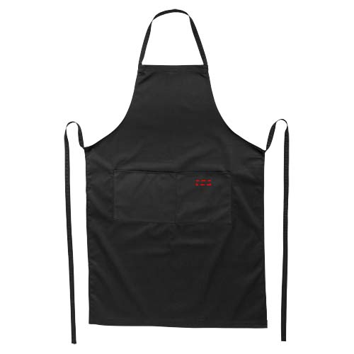 Ob mit oder ohne Logo, mit der Viera-Schürze ist es ein Leichtes, Kleidung beim Kochen zu schützen. Die Schürze besteht aus 240 g/m² Twill (65% Polyester und 35% Baumwolle), was sie dick und robust, aber dennoch weich und angenehm zu tragen macht. In den beiden Vordertaschen lassen sich Küchenutensilien schnell verstauen, und das 1 Meter lange Bindeband macht diese Schürze zu einer Einheitsgröße. Außerdem bietet die Viera-Schürze zahlreiche Möglichkeiten, ein beliebiges Logo anzubringen.