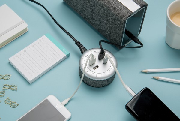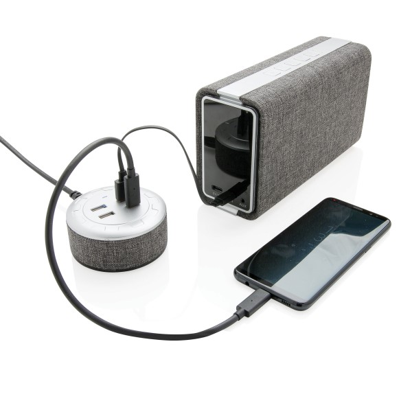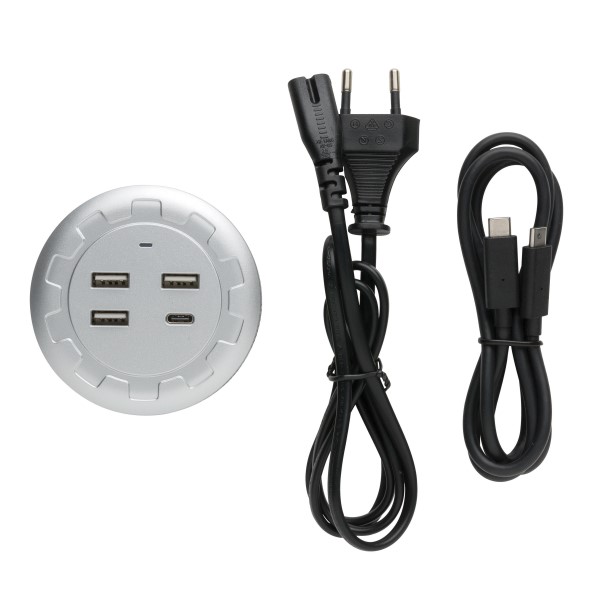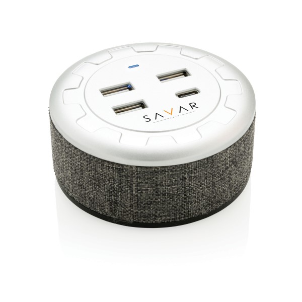 Der USB-Charger mit trendigem Stoffbezug hat 3 USB Ports und einen Type C-Anschluß. Total output: 4.1A, mit 1,5m EU-Stromkabel. Geschütztes Design®