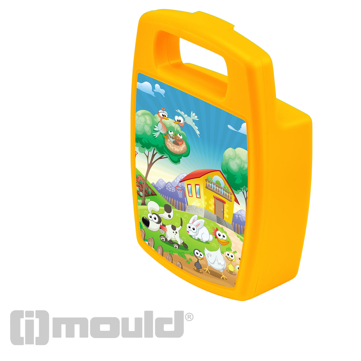 Praktische Brotzeitdose mit Griff und Klappdeckel mit Schnappverschluss. Im Deckel sind 2 Halterungen für das passende Besteck integriert (05274, Box inkl. Besteck). Die Box ist komplett aus Kunststoff gefertigt.
