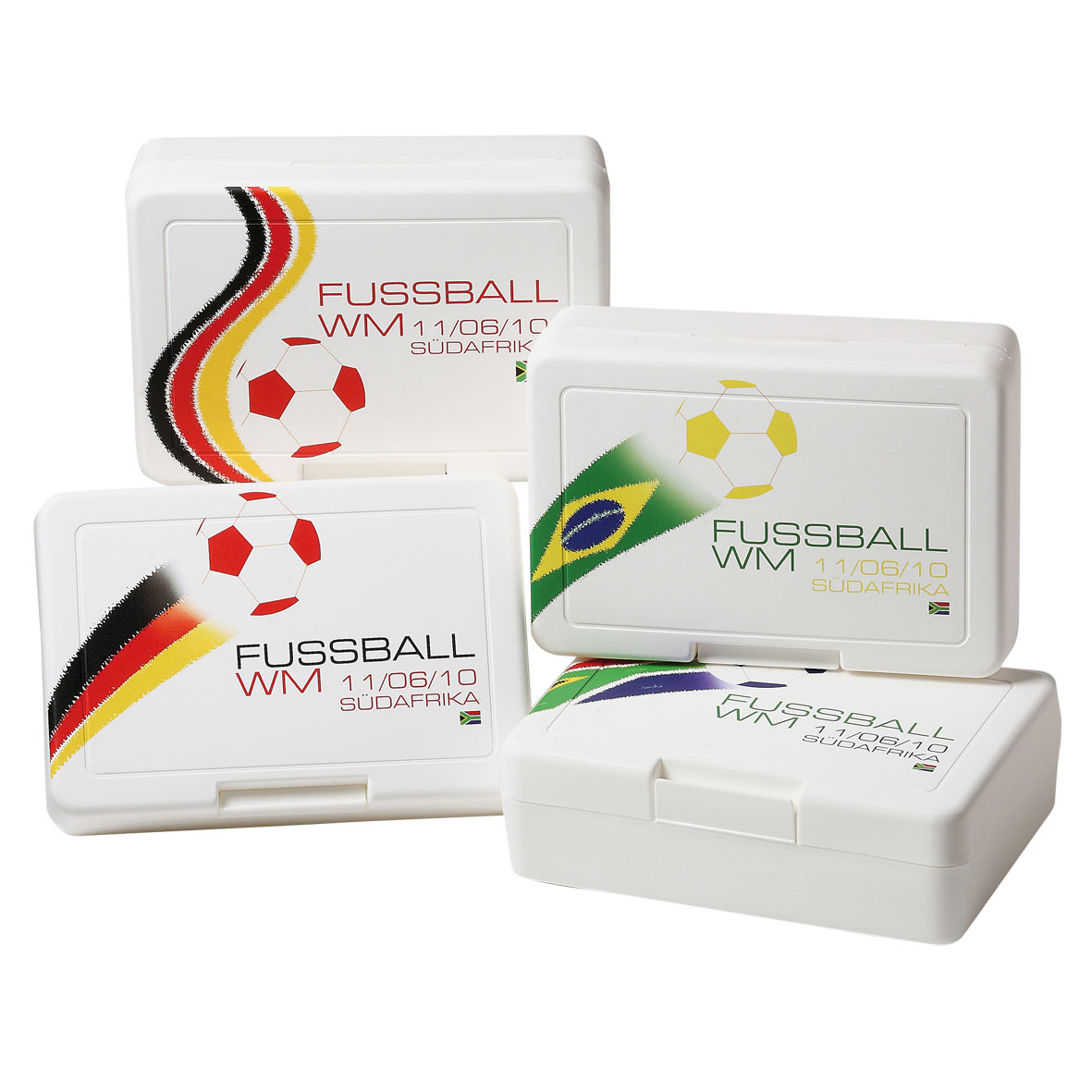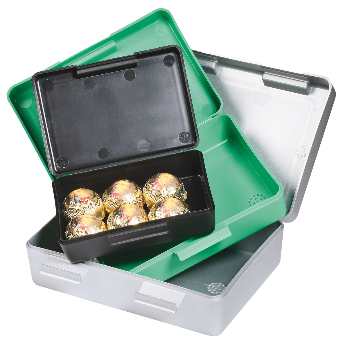 Ideal für eine leckere Brotzeit. Flache Box mit 2 Klickverschlüssen. In vielen verschiedenen Farben erhältlich. IMould-Veredelung möglich.