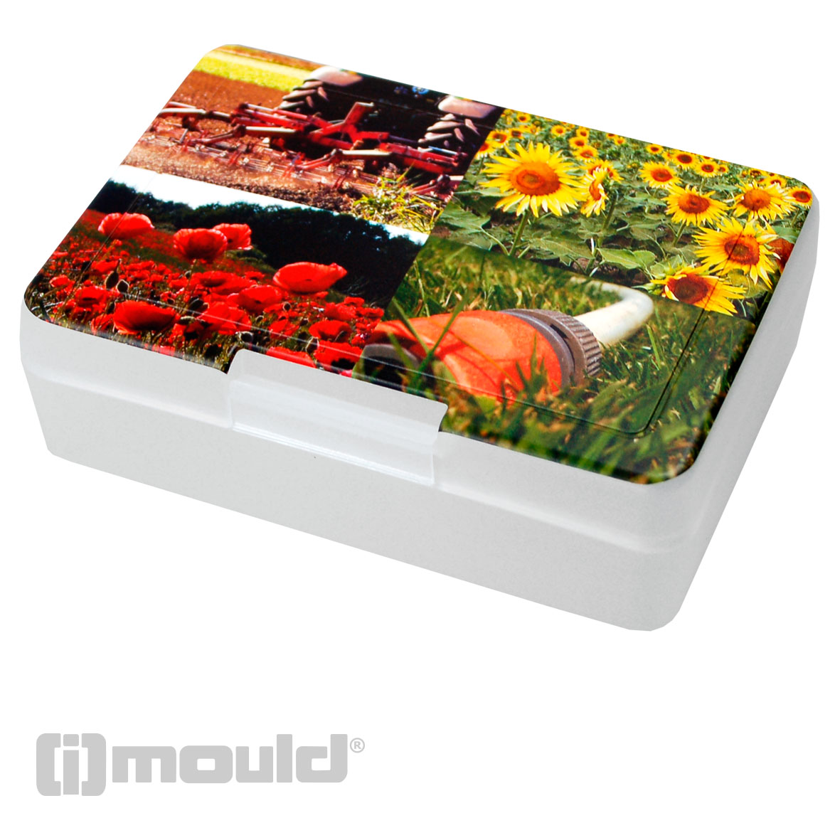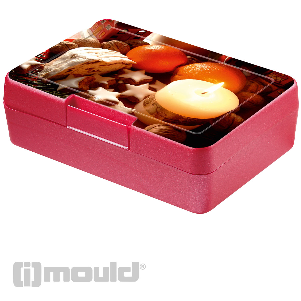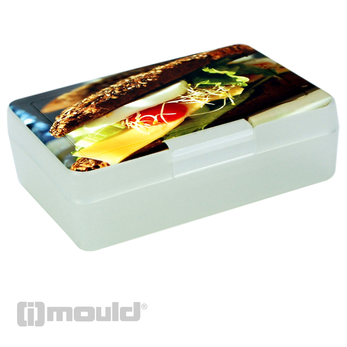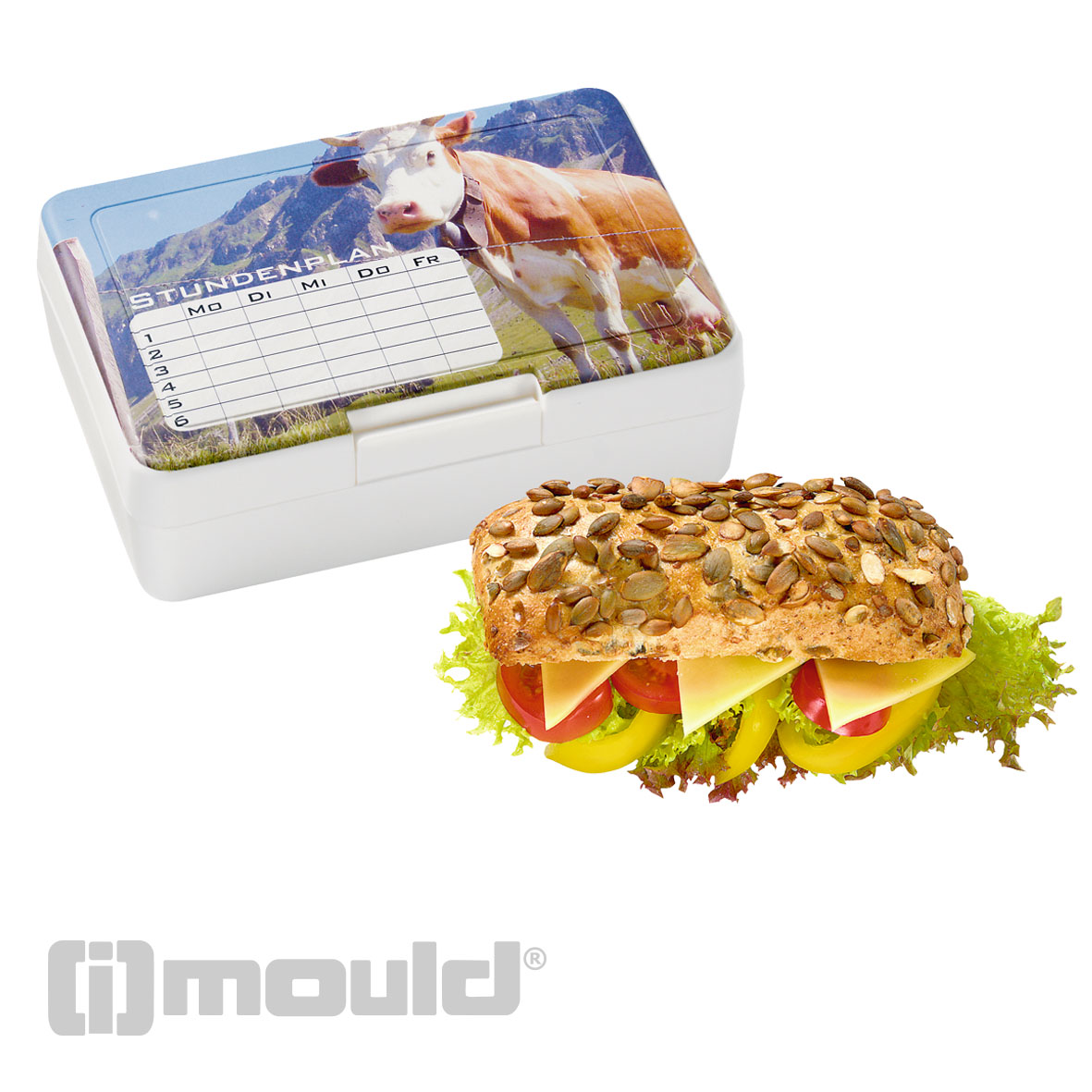 Perfekt für die nächste Brotzeit. Schicke Vorratsdose mit Klickverschluss – in verschiedenen Farben erhältlich und bestens für die Veredelung per IMould-Verfahren geeignet.