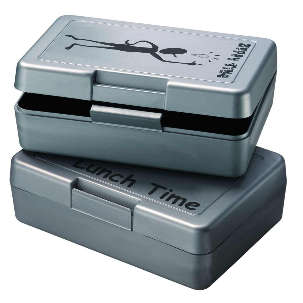 Ob großes Frühstück oder ausgiebige Brotzeit, mit dieser geräumigen Box werden Sie satt. Durch die gerade Form lässt sich der Platz optimal ausnutzen. Die überlappende Kante und der Klickverschluss sorgen für längere Frische. IMould-Veredelung möglich.