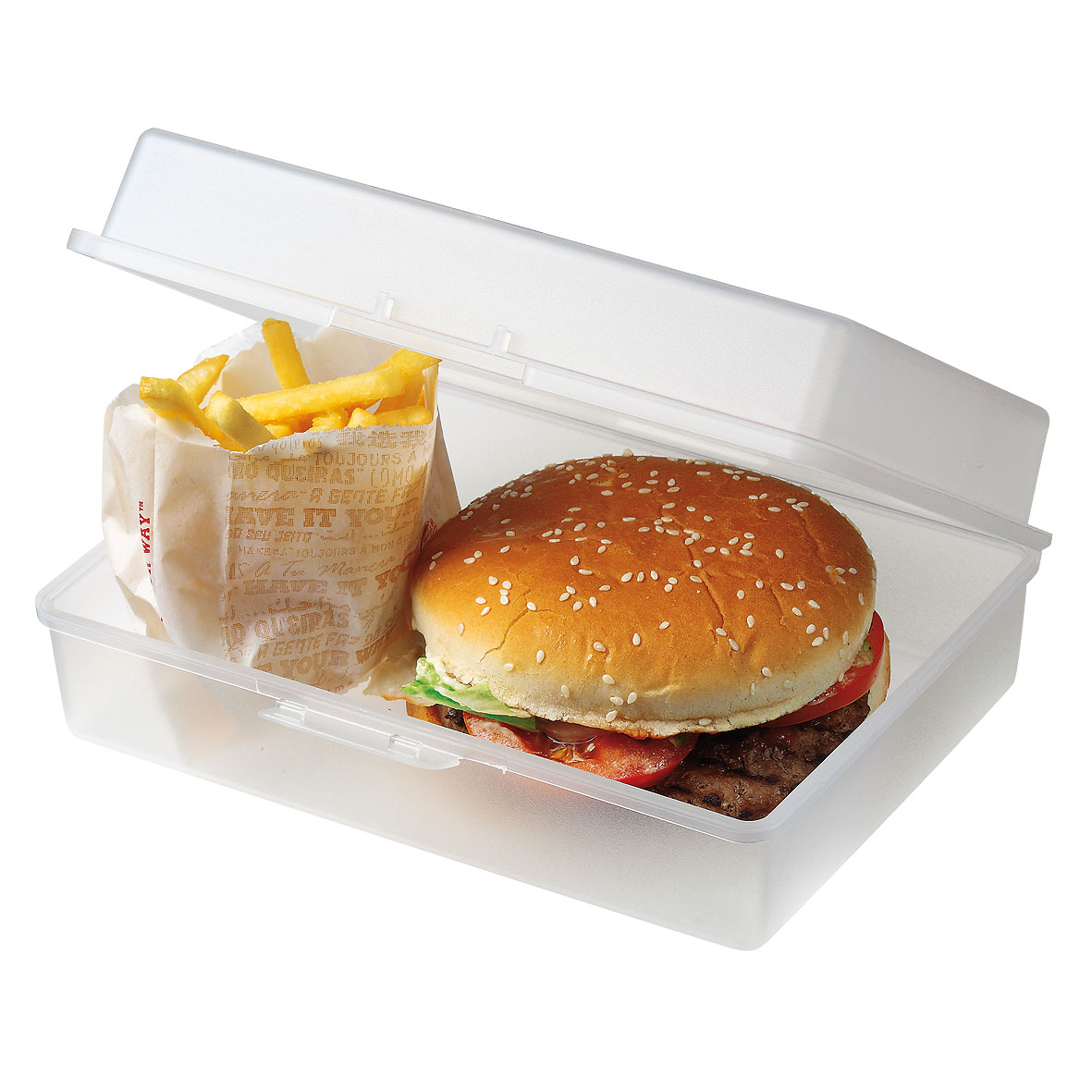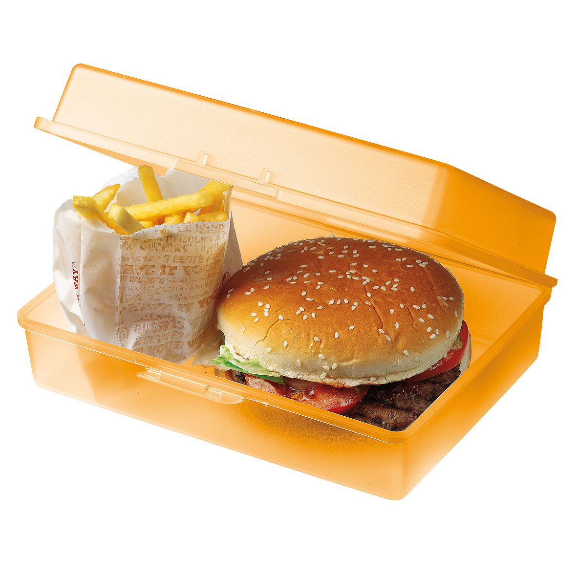Ob großes Frühstück oder ausgiebige Brotzeit, mit dieser geräumigen Box werden Sie satt. Durch die gerade Form lässt sich der Platz optimal ausnutzen. Die überlappende Kante und der Klickverschluss sorgen für längere Frische. IMould-Veredelung möglich.