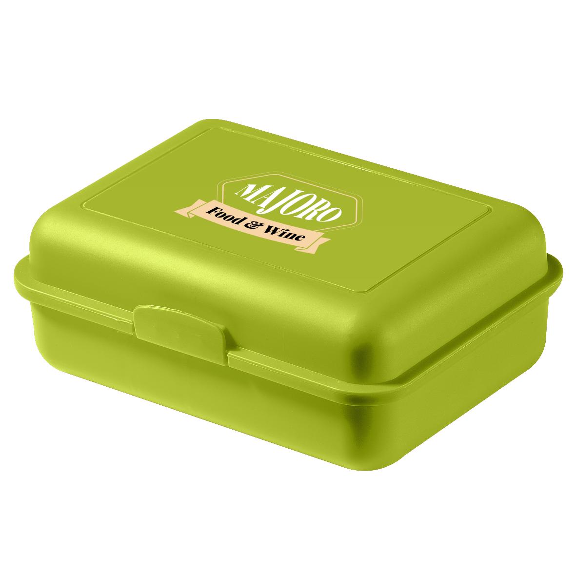 Ideal für eine leckere Brotzeit. Flache Box mit 2 Klickverschlüssen. In vielen verschiedenen Farben erhältlich. IMould-Veredelung möglich.