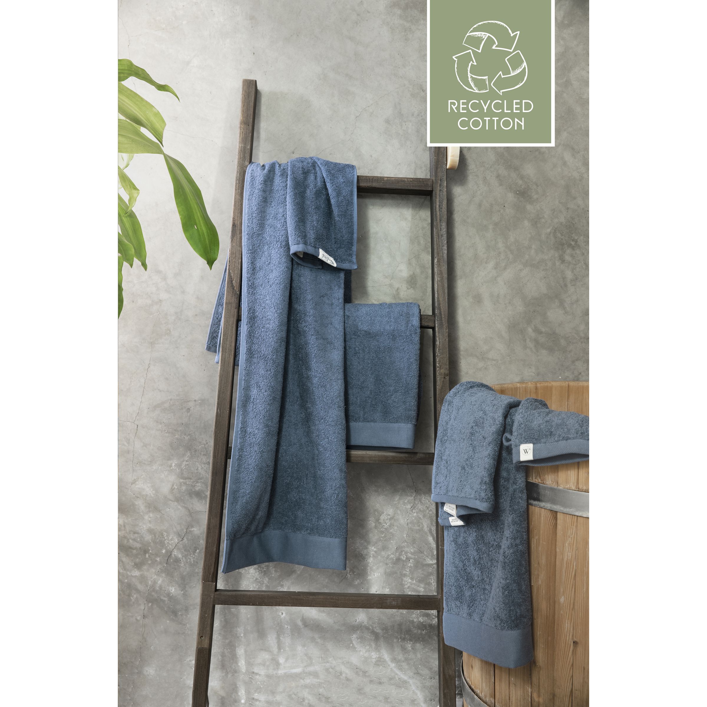 Stilvolles Handtuch der Marke Walra. Hergestellt aus 70% recycelter Baumwolle und 30% Baumwolle (550 g/m²). Das Handtuch hat eine feine Struktur, eine elegante Bordüre und eine praktische Aufhängeschlaufe. Wunderbar weich und gut saugfähig. Dieses Produkt ist Öko-Tex-zertifiziert. Durch die Wiederverwendung von Materialien werden bei der Herstellung dieser Badetextilien eine Menge Wasser, CO2-Emissionen und Energie eingespart. Dies wird durch das unabhängige REMO-Gütesiegel bestätigt.
