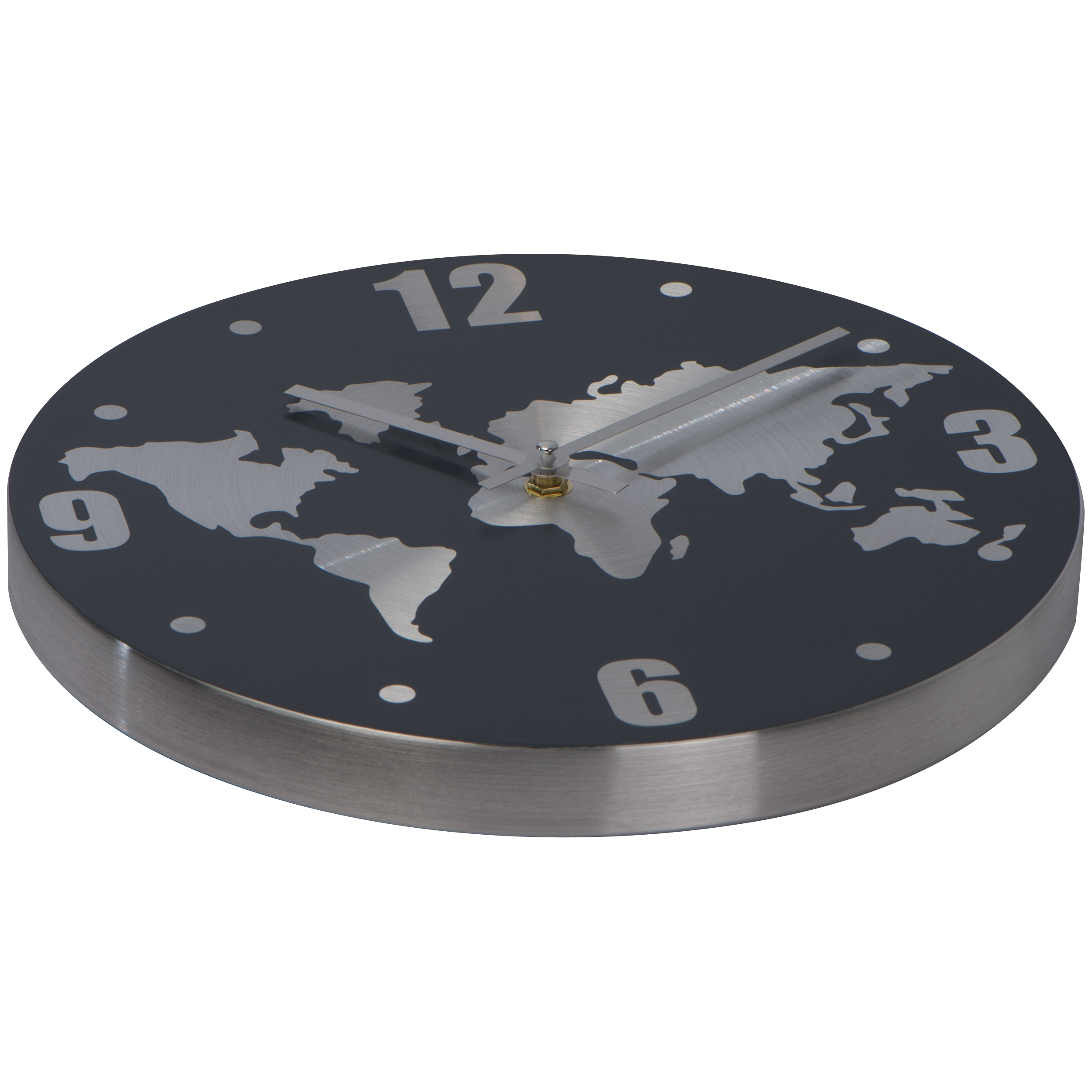Wanduhr aus Aluminium mit Weltkarte in Hintergrund Art.-Nr.: 66583-001