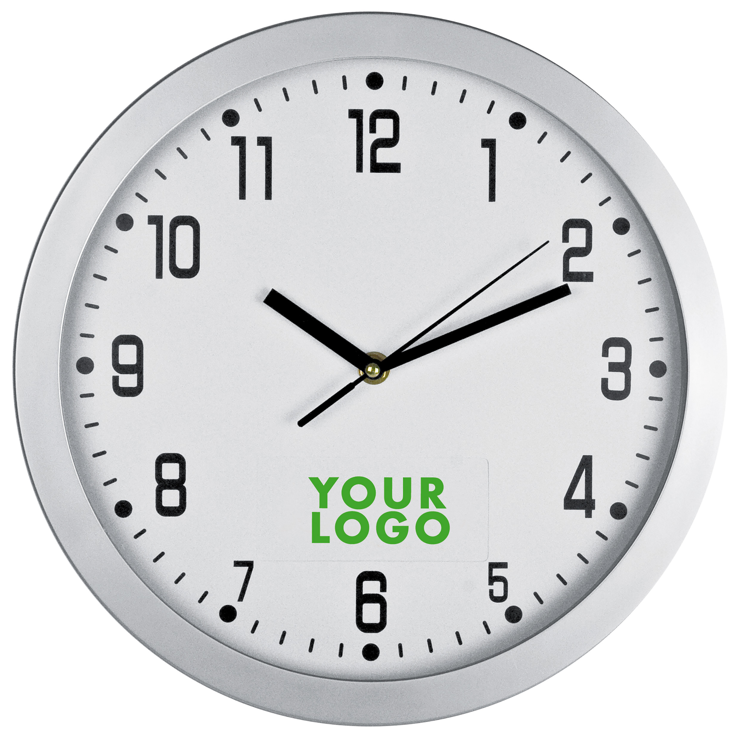 Wanduhr mit perfekter Lösung zur Bedruckung direkt auf dem Zifferblatt. Kein Auseinanderschrauben der Uhr nötig. Ihre Werbung wird auf das von hinten leicht entnehmbare Plättchen gedruckt.