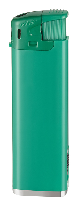 U-507 LED 05 | Elektronik-Feuerzeug [nachfüllbar] - Korpus: Vollfarbe Grün / Kappe: Vollfarbe Grün - / Normale Flamme / VE: 50er Tray - ISO zertifiziert