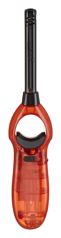 Stabfeuerzeug PINATUBO : mit Sicherungsknopf, Regulierungsrädchen zum Einstellen der Flammengröße, Sichtfenster zur Kontrolle des Füllstandes, befüllt mit Gas und nachfüllbar