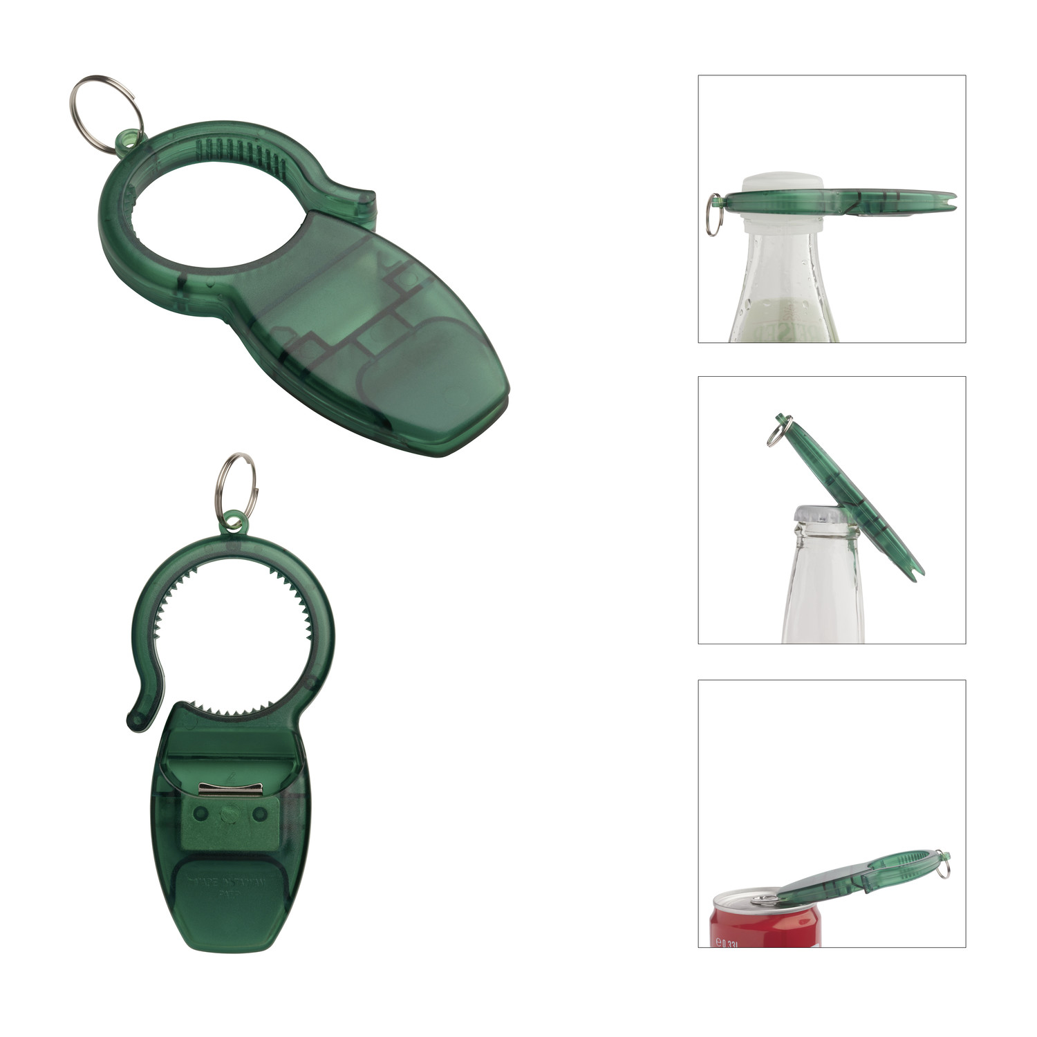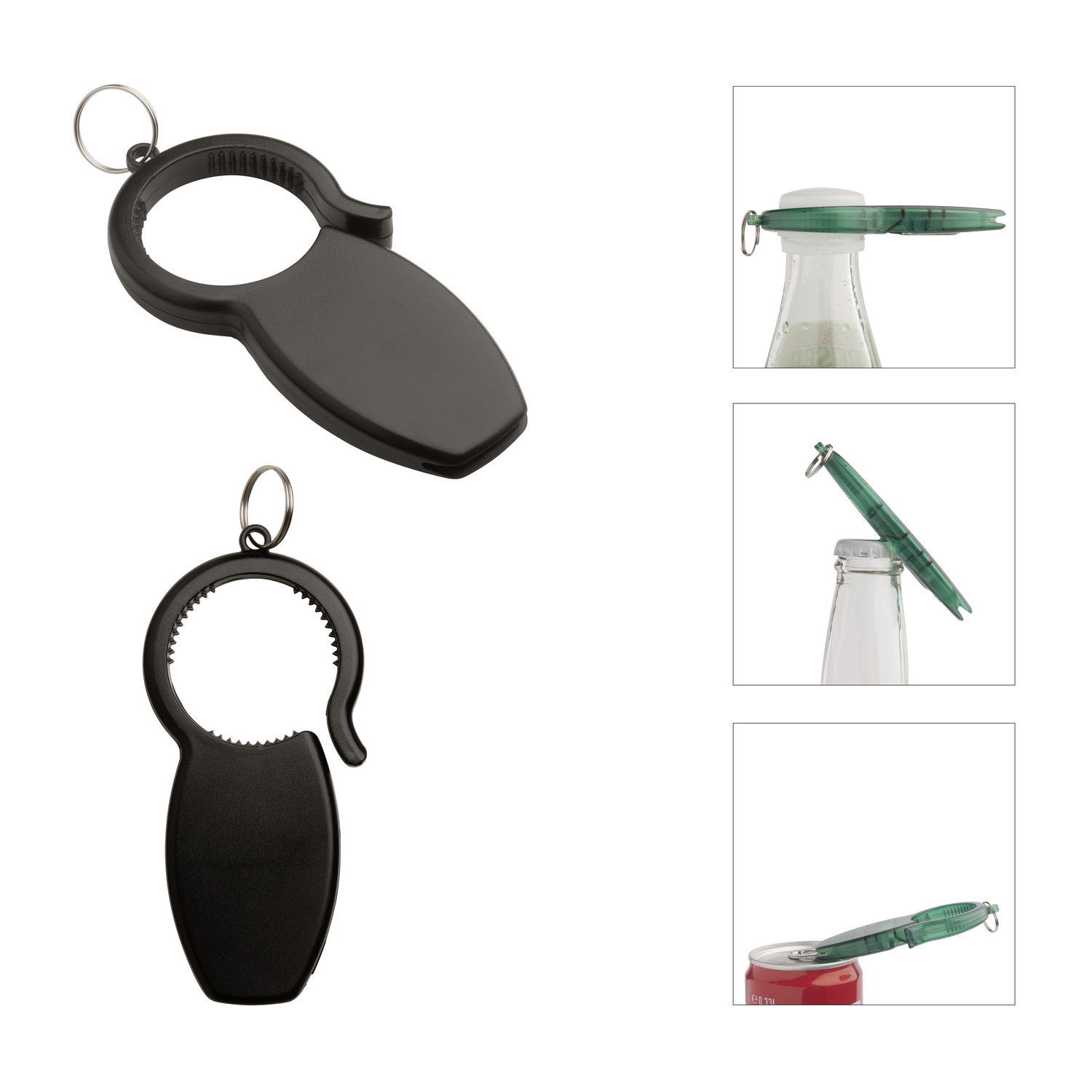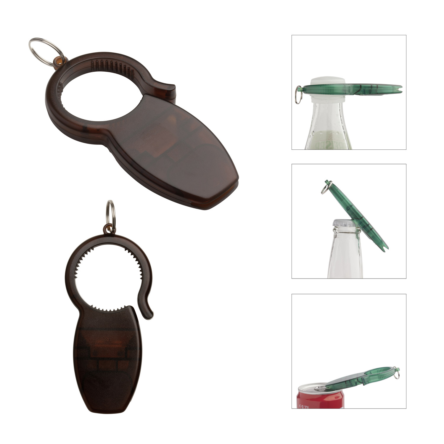 REFLECTS exklusiv: Gleich drei Funktionen vereint - ein klassischer Kapselheber ergänzt durch Öffner für Getränkedosen und Kunststoffflaschen für Picknick, Küche und Bar.Kunststoff, braun, Flaschenöffner, Polybeutel.