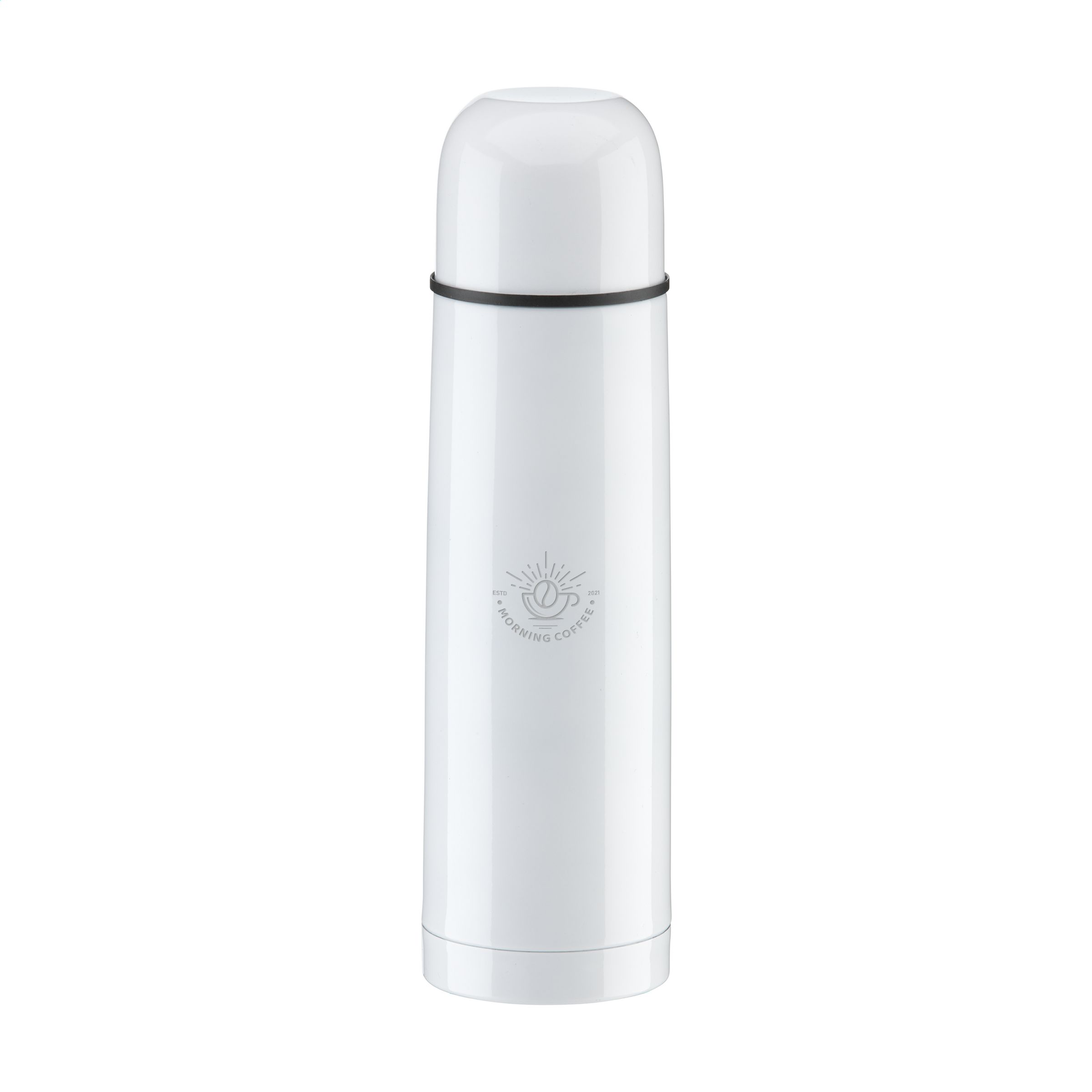 Doppelwandige, vakuumisolierte, rostfreie Edelstahl Thermoflasche mit doppeltem Schraubkopf und einem nützlichen Schanksystem. Auslaufsicher. Der Deckel ist auch als Trinkbecher zu gebrauchen. Abgerundet durch ein gefrostetes Metallfinish. Fassungsvermögen 500 ml. Wird einzeln in einem Kraftkarton geliefert.