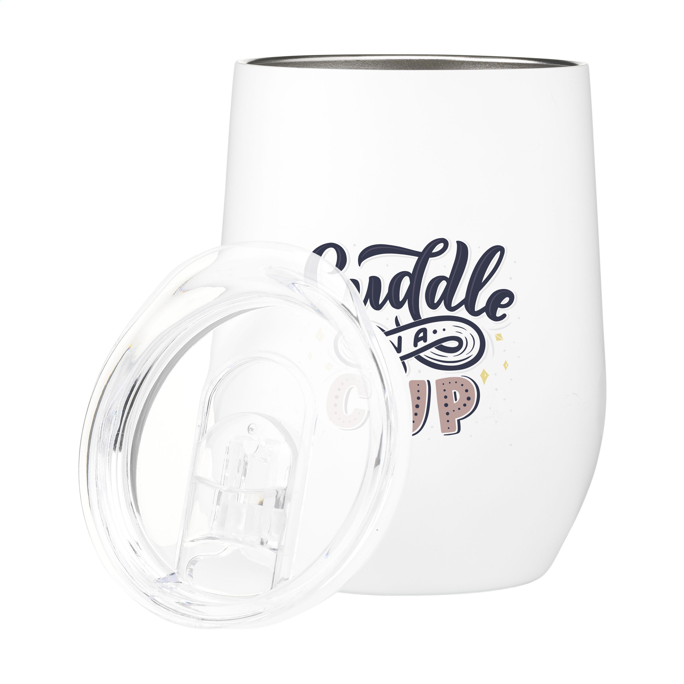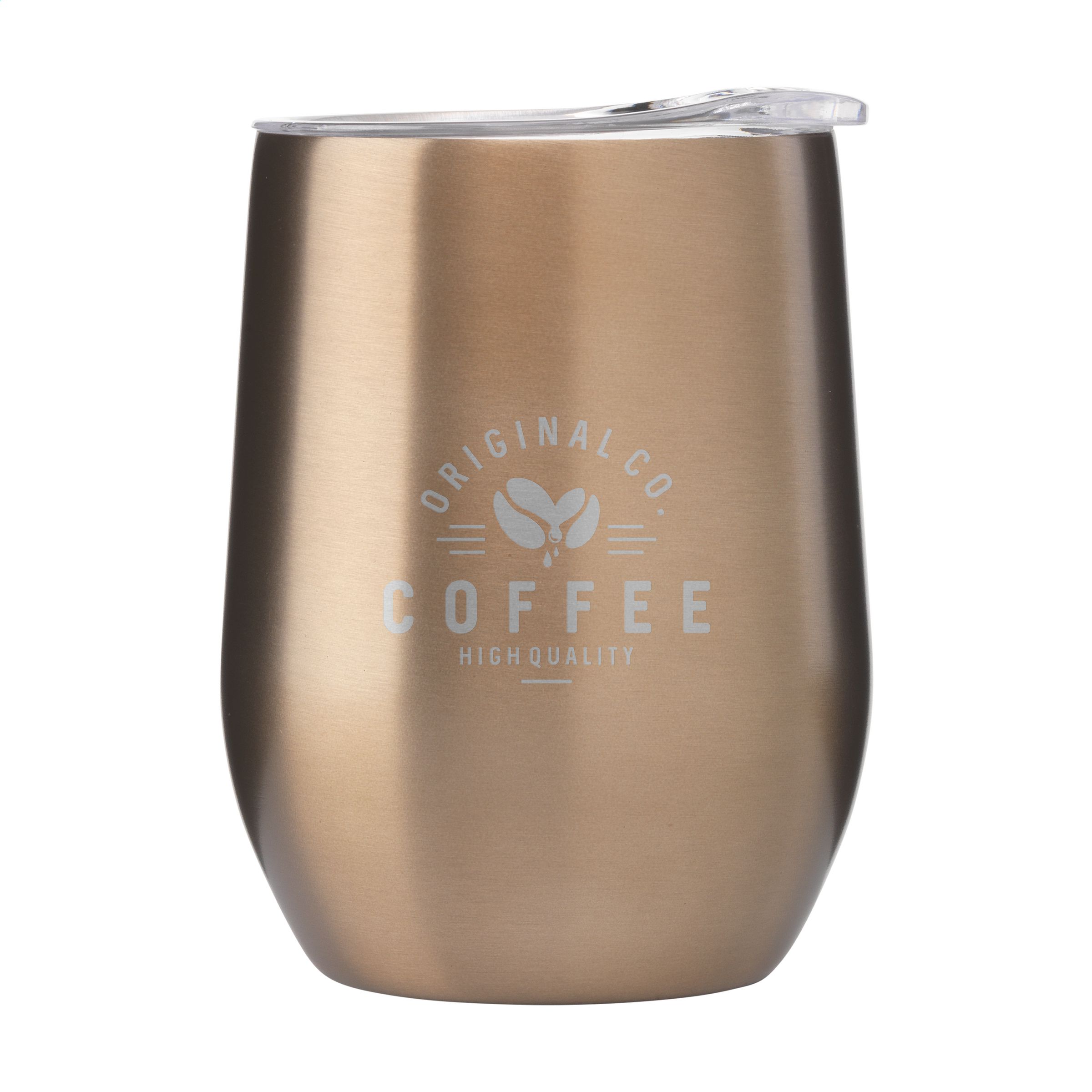WoW! Doppelwandiger Trinkbecher. Die Innen- und Außenwände sind aus recyceltem Edelstahl gefertigt. Dadurch bleiben heiße Getränke länger auf der richtigen Temperatur. Durch sein besonders schönes Design und die attraktive matte Oberfläche fällt der Becher sofort auf. Der transparente Aufsteckdeckel aus Kunststoff ist mit einer verschließbaren Trinköffnung versehen. Fassungsvermögen 350 ml. RCS-zertifiziert. Gesamtes recyceltes Material: 83%. Wird einzeln in einem Kraftkarton geliefert.
