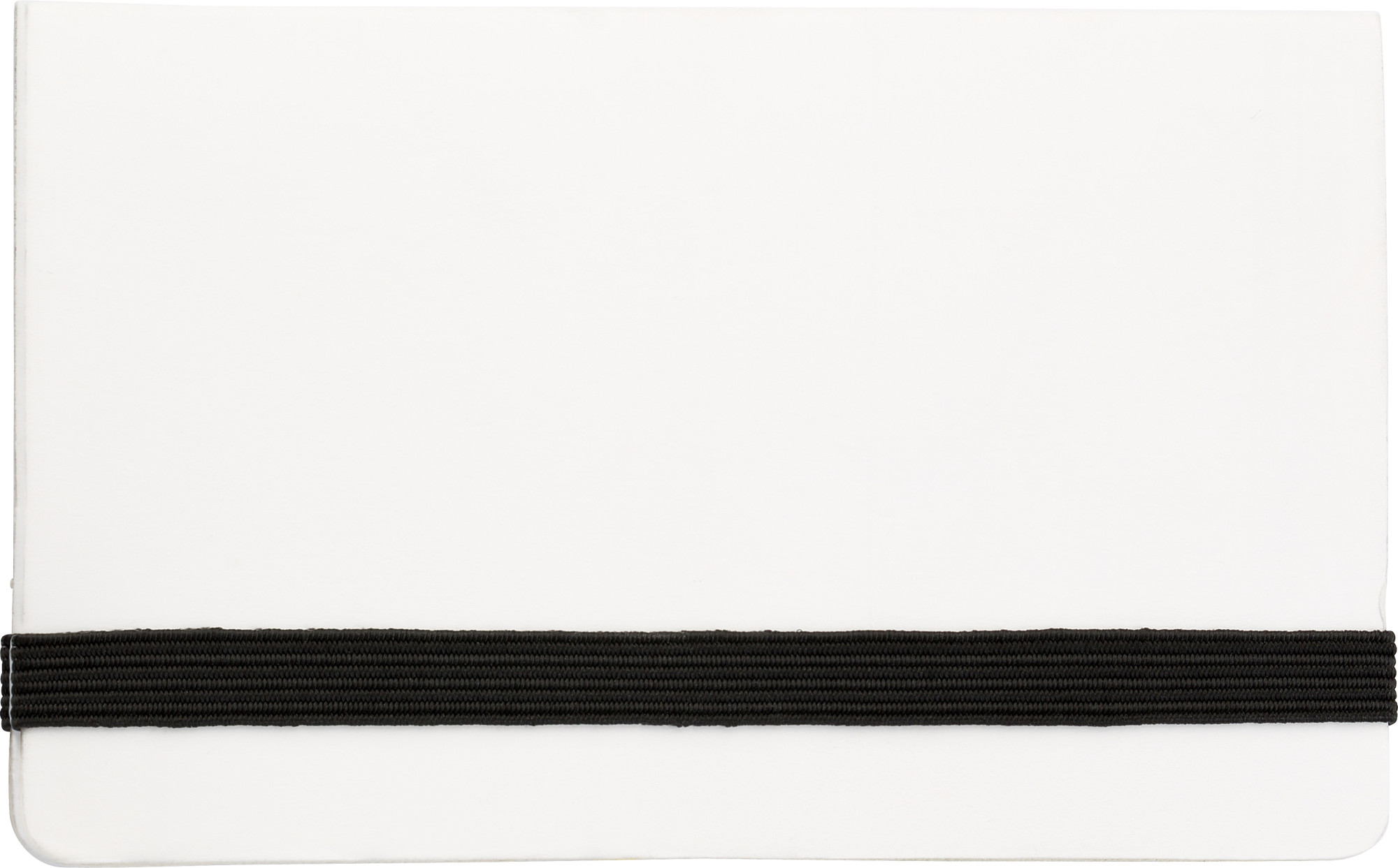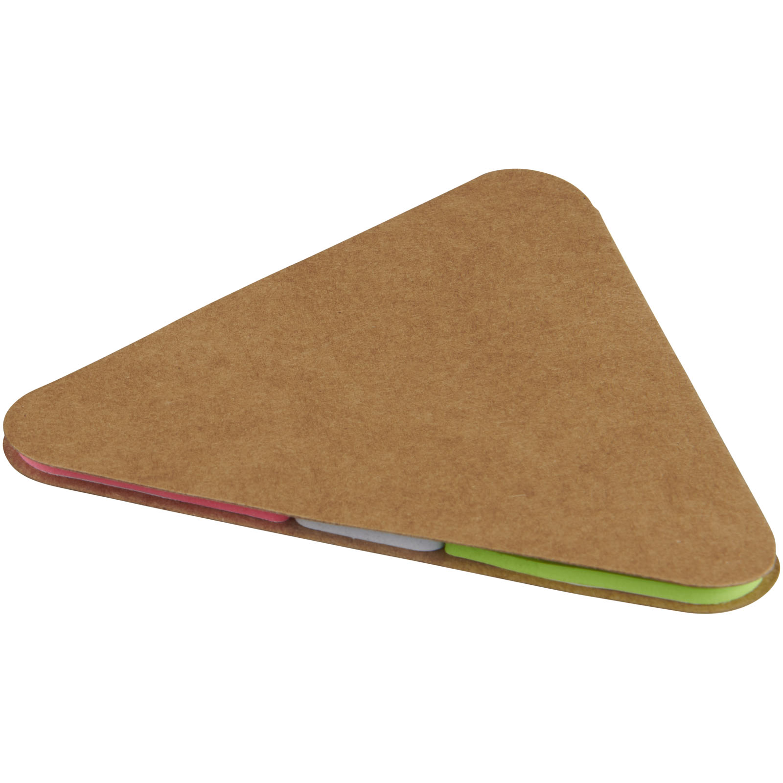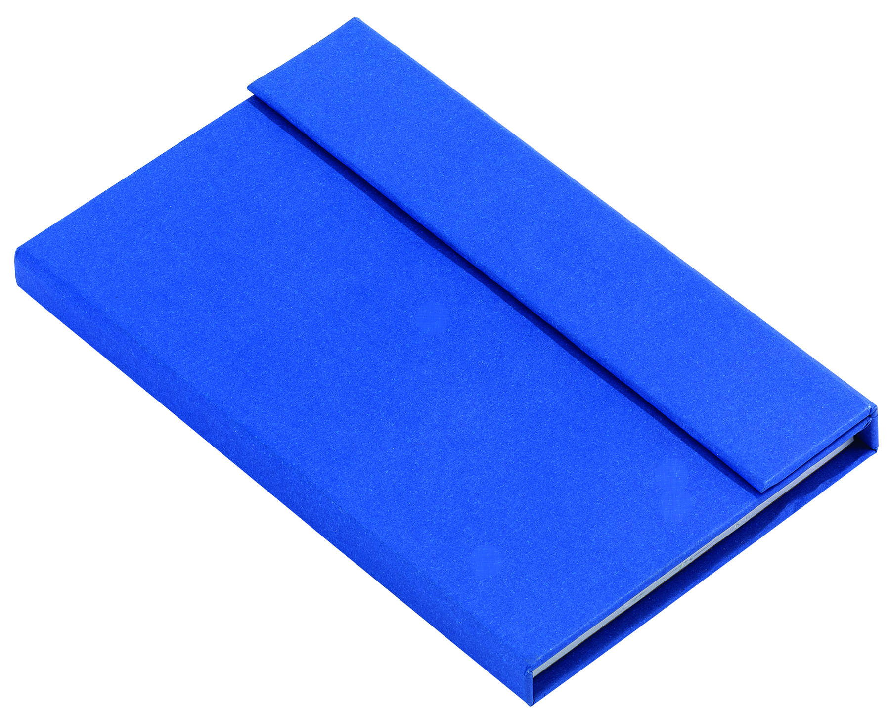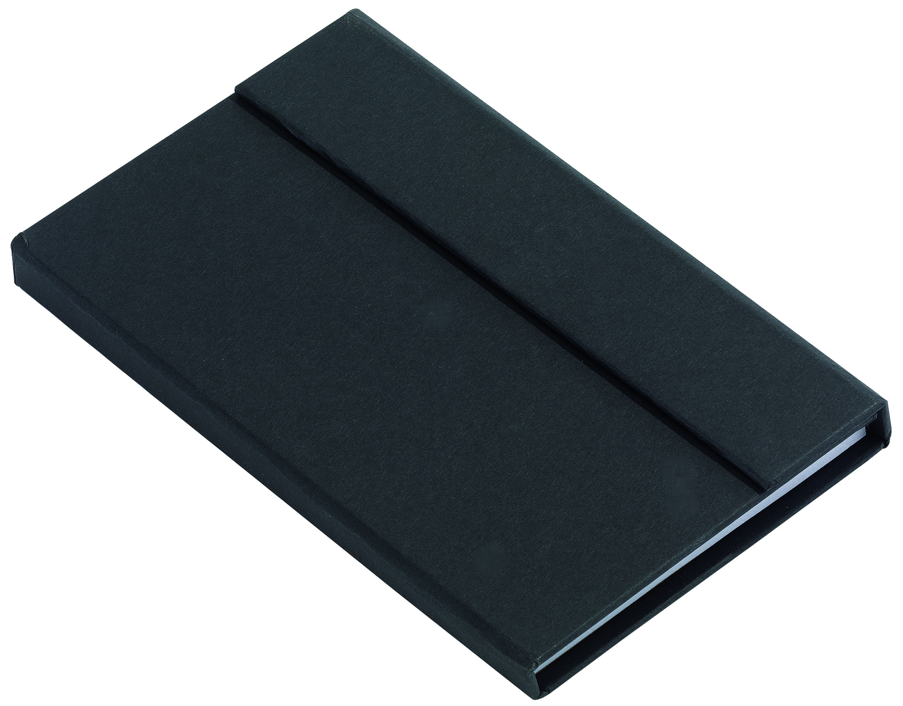 Notizbuch mit Cover aus recyceltem Karton. 100 Blatt Blanko-Recyclingpapier, 2 unterschiedlich große, gelbe Haftnotizblöcke und 5 farbige Markerblöcke. Mit passendem Druckkugelschreiber mit Schaft aus Papier. Stifthalter. Elastisches Verschlussband.