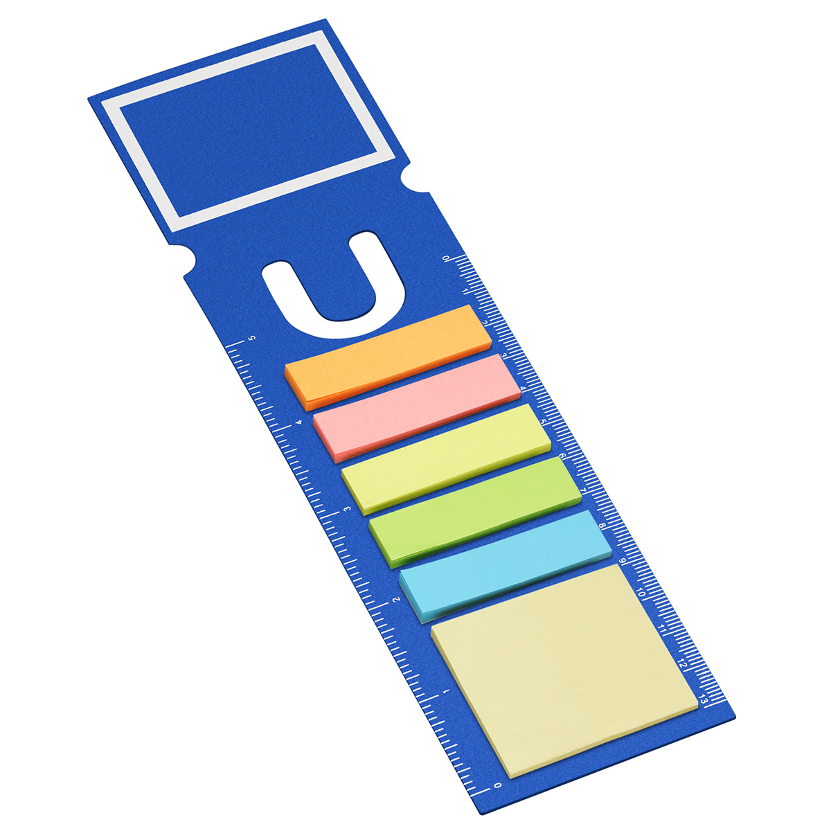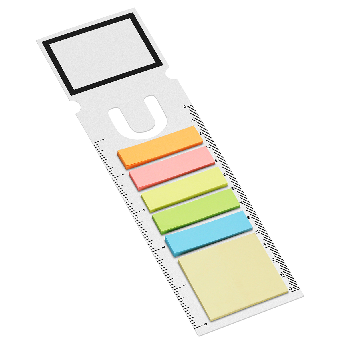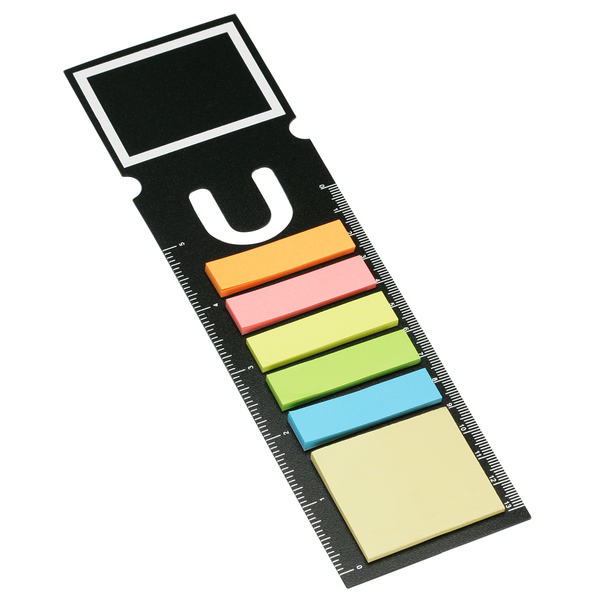 Haftnotizen-Lesezeichen, mit jeweils ca. 25 Haftnotizmarkern in 6 verschiedenen Farben (ca. 12 x 45 mm und ca. 40 x 45 mm) und gedruckten Skalen (13 cm und 5 Inch).