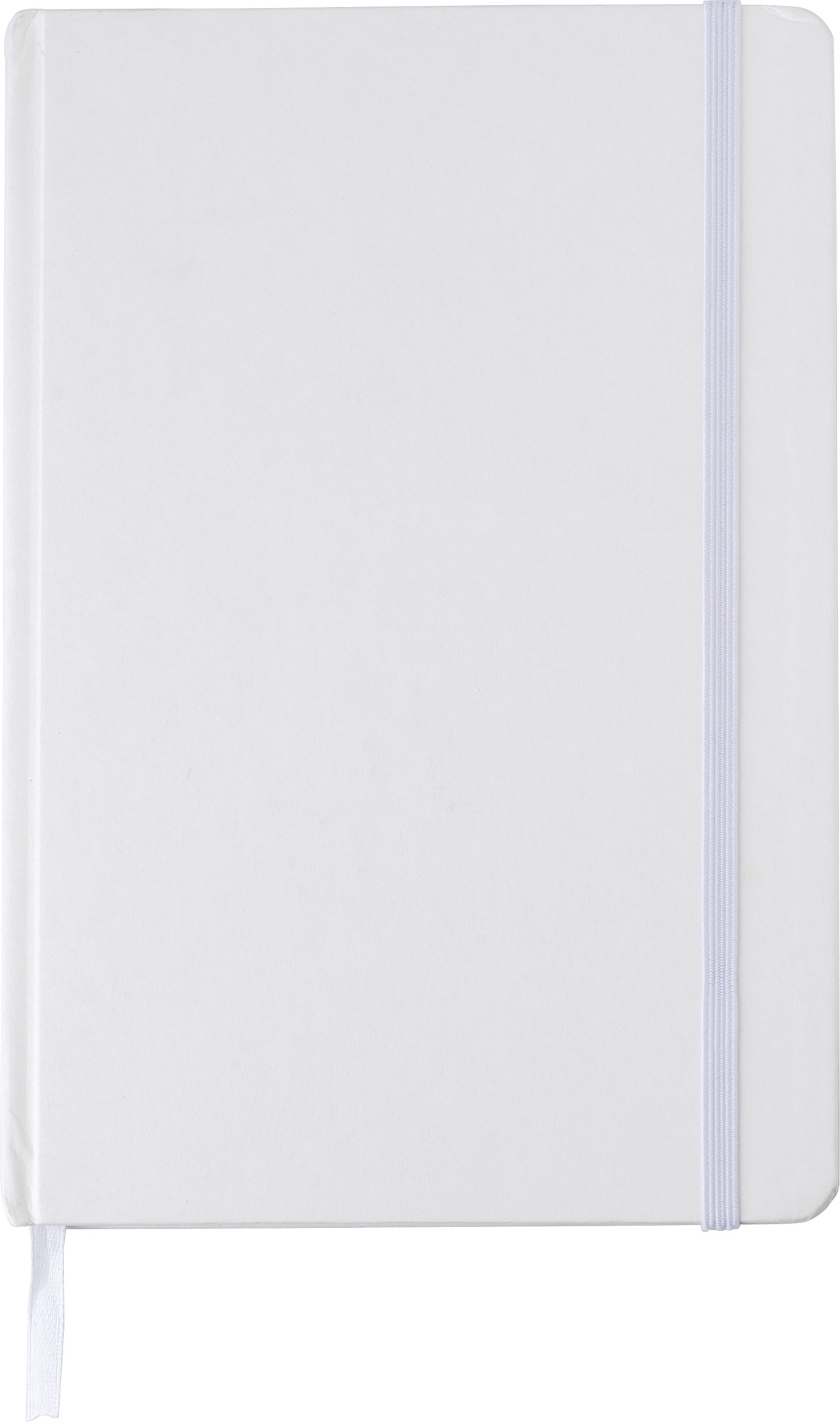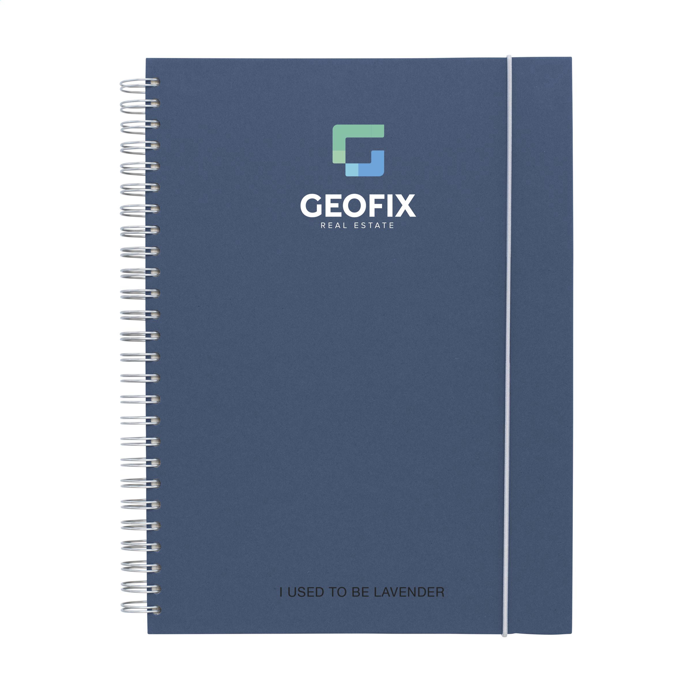Notizbuch aus liniertem Recyclingpapier, 80 Blatt, (70 g/m²) mit abgerundeten Ecken, farbigem Elastikband und einer Stiftschlaufe, die zu den Stiftfarben 107384 passt.