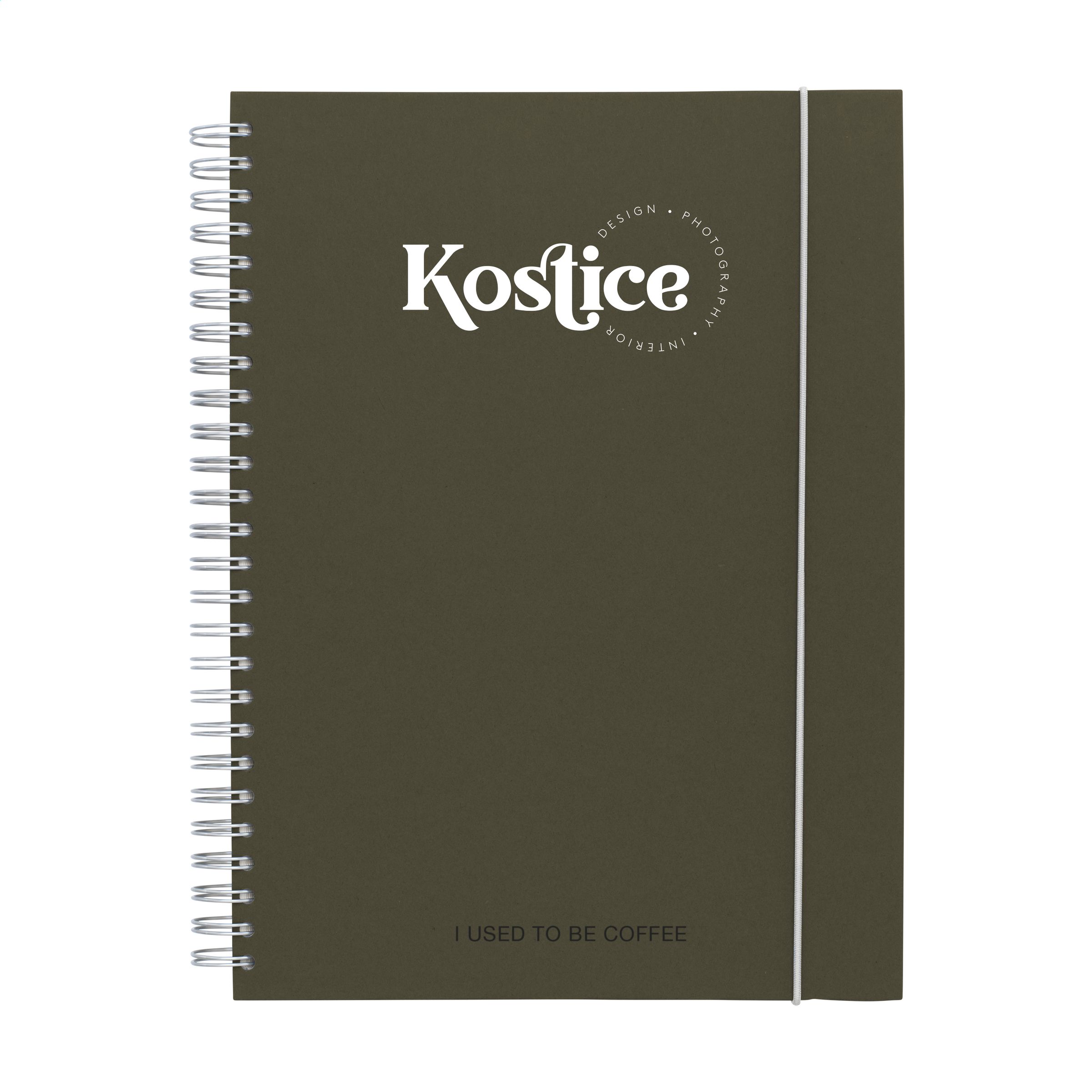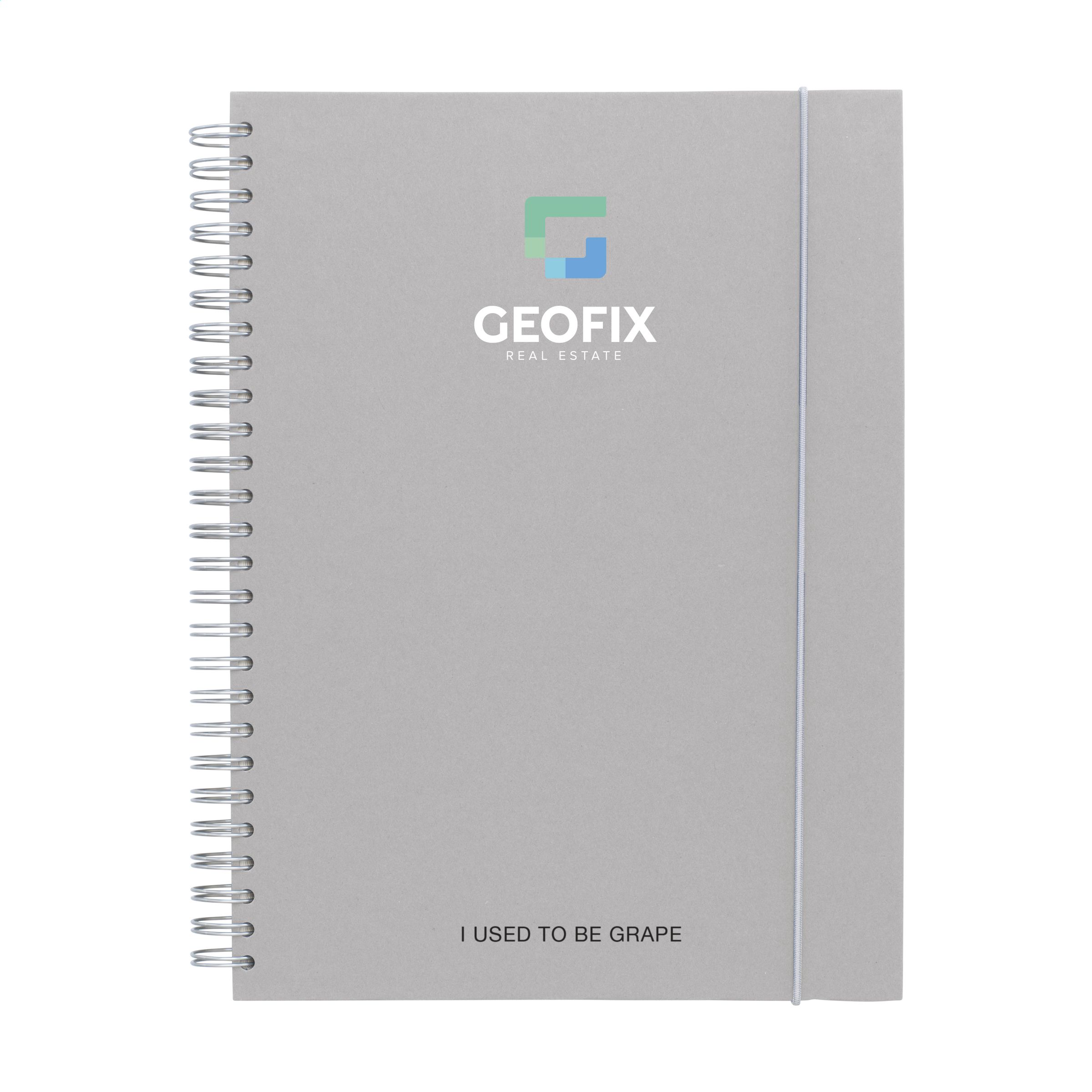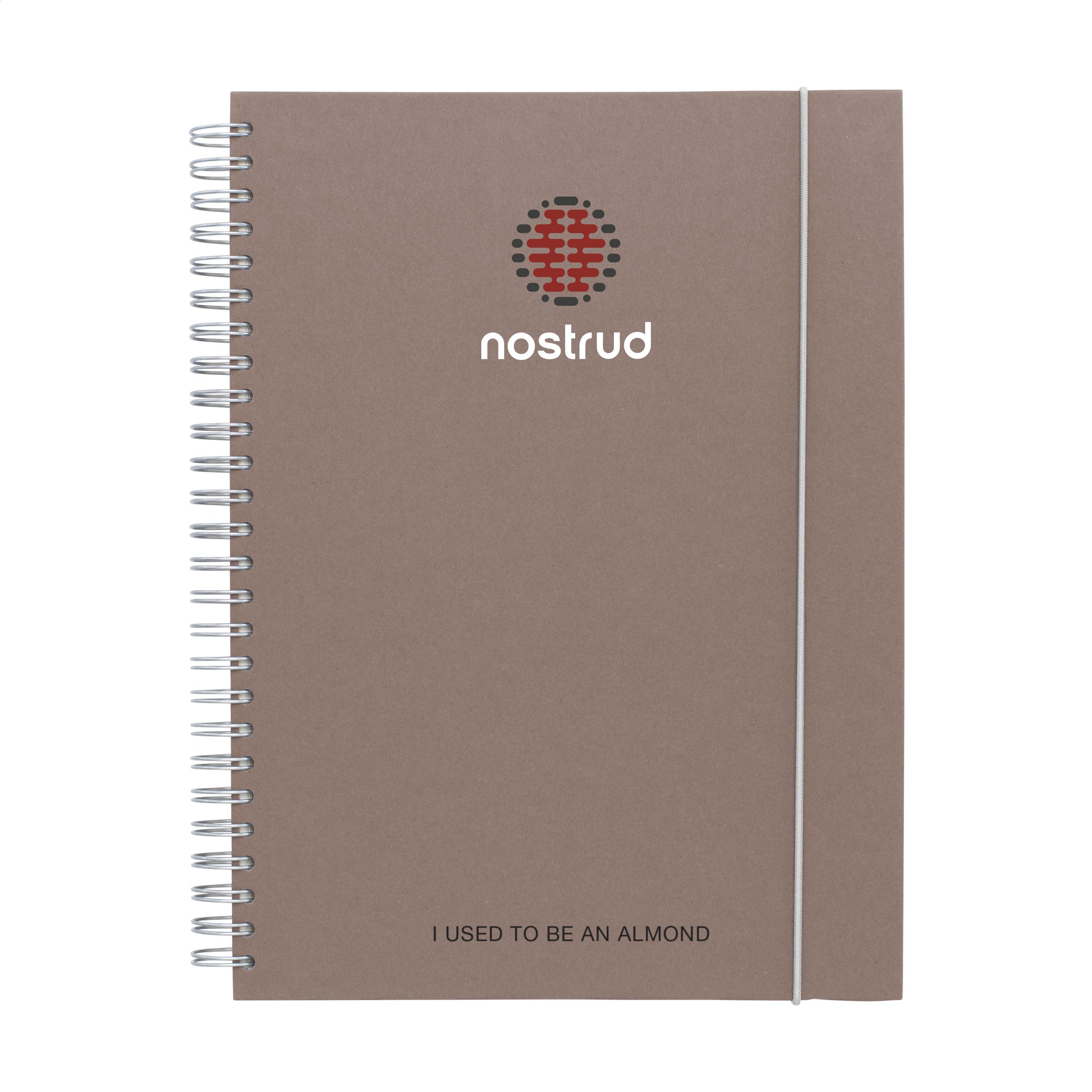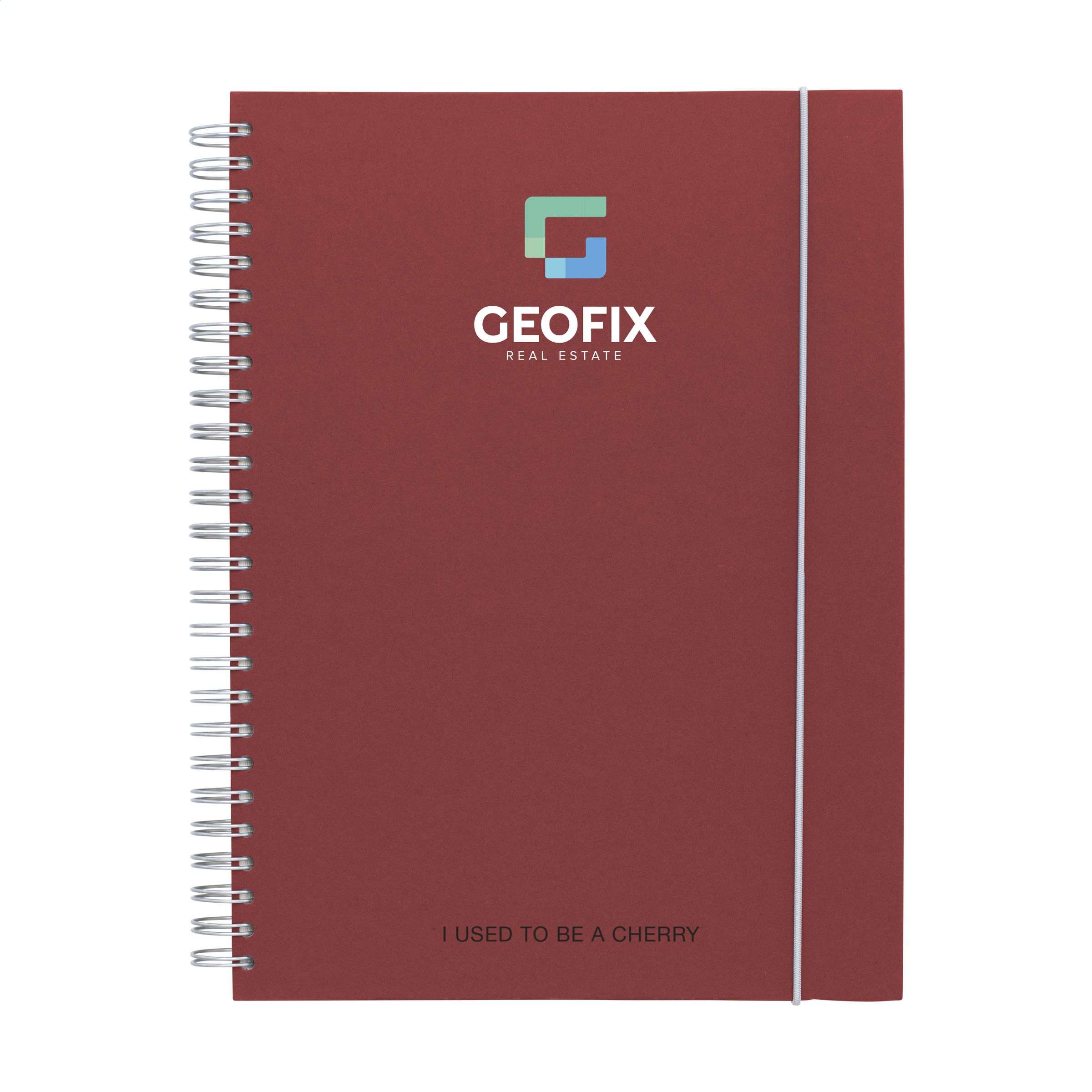 WoW! Notizbuch im A5-Format. Mit 100 Blatt/200 Seiten liniertem Papier (80 g/m²), einer stabilen Wire-O-Bindung und einem Verschlussgummi. Der Hardcover-Einband besteht aus landwirtschaftlichen und organischen Abfällen, z. B. von Tomaten, Paprika, Pflanzen und Zwiebeln. Diese Abfälle werden mit Recyclingpapier aus Europa gemischt. Ein praktisches Notizbuch, um Ideen zu notieren und festzuhalten.