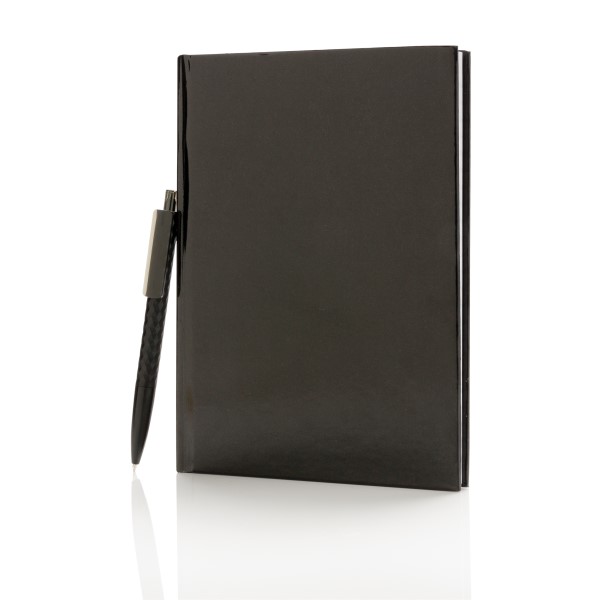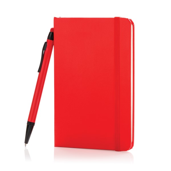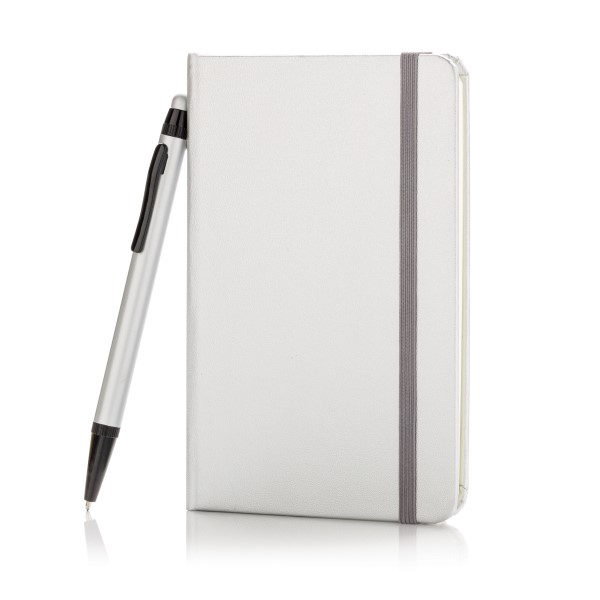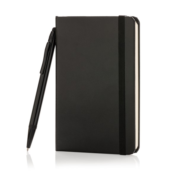Die perfekte Kombination: A5 PU Notizbuch mit Stifteschlaufe und Stylus Stift aus Metall. Inkl. 160 Seiten von 80g/m² Papier im Inneren. Konfektioniert in Geschenkbox.