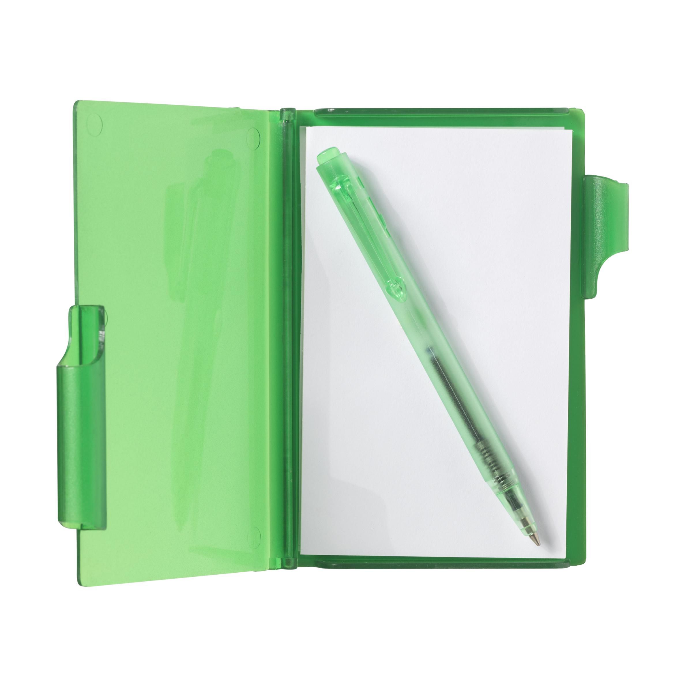 Mininotizbuch aus recyceltem Material mit ca. 70 Blatt/140 Seiten cremefarbenem, liniertem Papier (70 g/m²), Pappumschlag, starker, metallener Spiralbindung und elastischem Verschluss. Inkl. blauschreibendem Kugelschreiber.