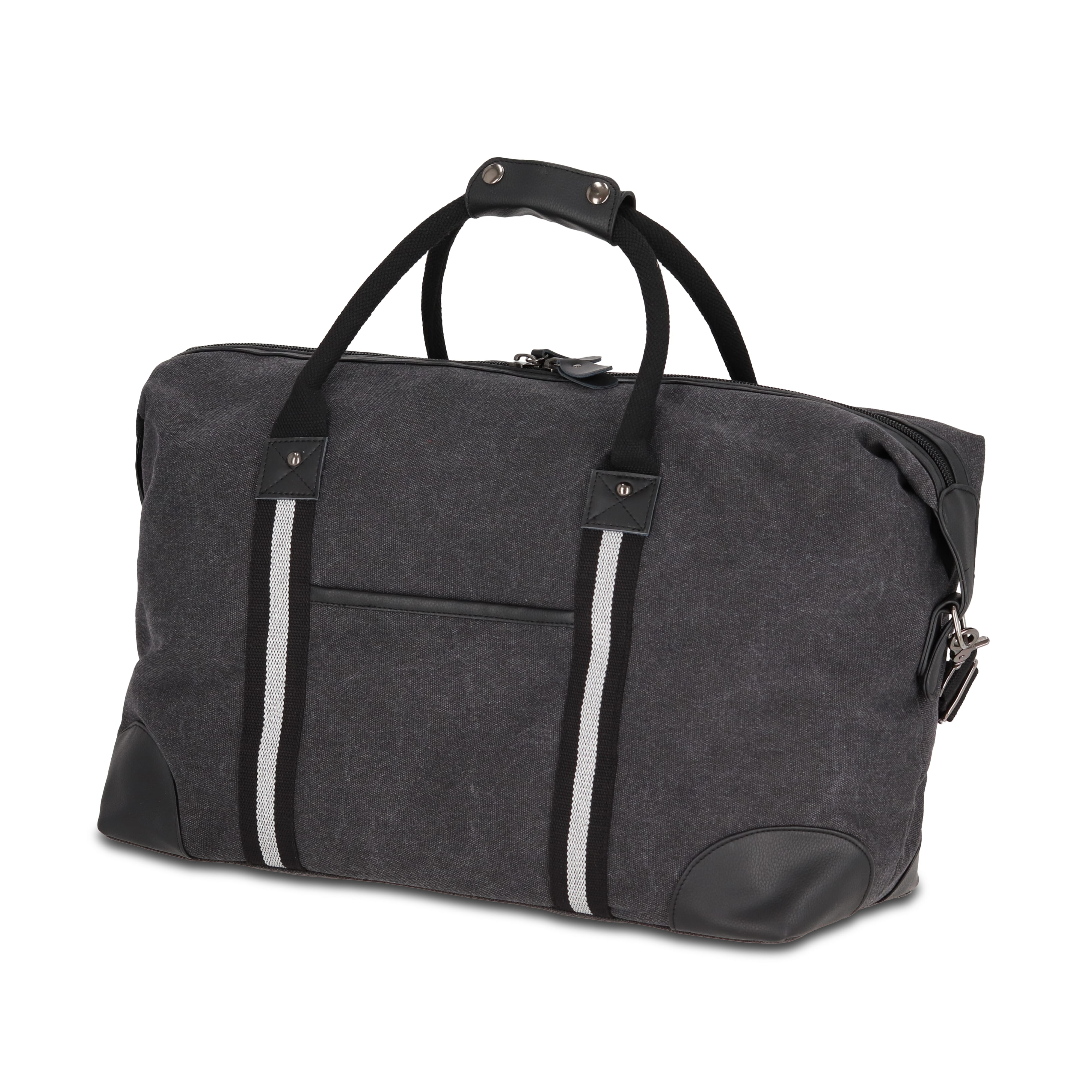 <p>Elegante Reisetasche aus recyceltem Baumwoll-Canvas. Mit 100% recyceltem, reflektierendem Gurtband, luxuriösen Reißverschlüssen und Griffen sowie einem Futter aus 100% recyceltem Polyester. Mit seitlichen Tragegriffen, verstellbarem, abnehmbarem Schultergurt, 1 Seitentasche, 2 Vordertaschen und 3 Innentaschen, eine davon mit Reißverschluss.</p>