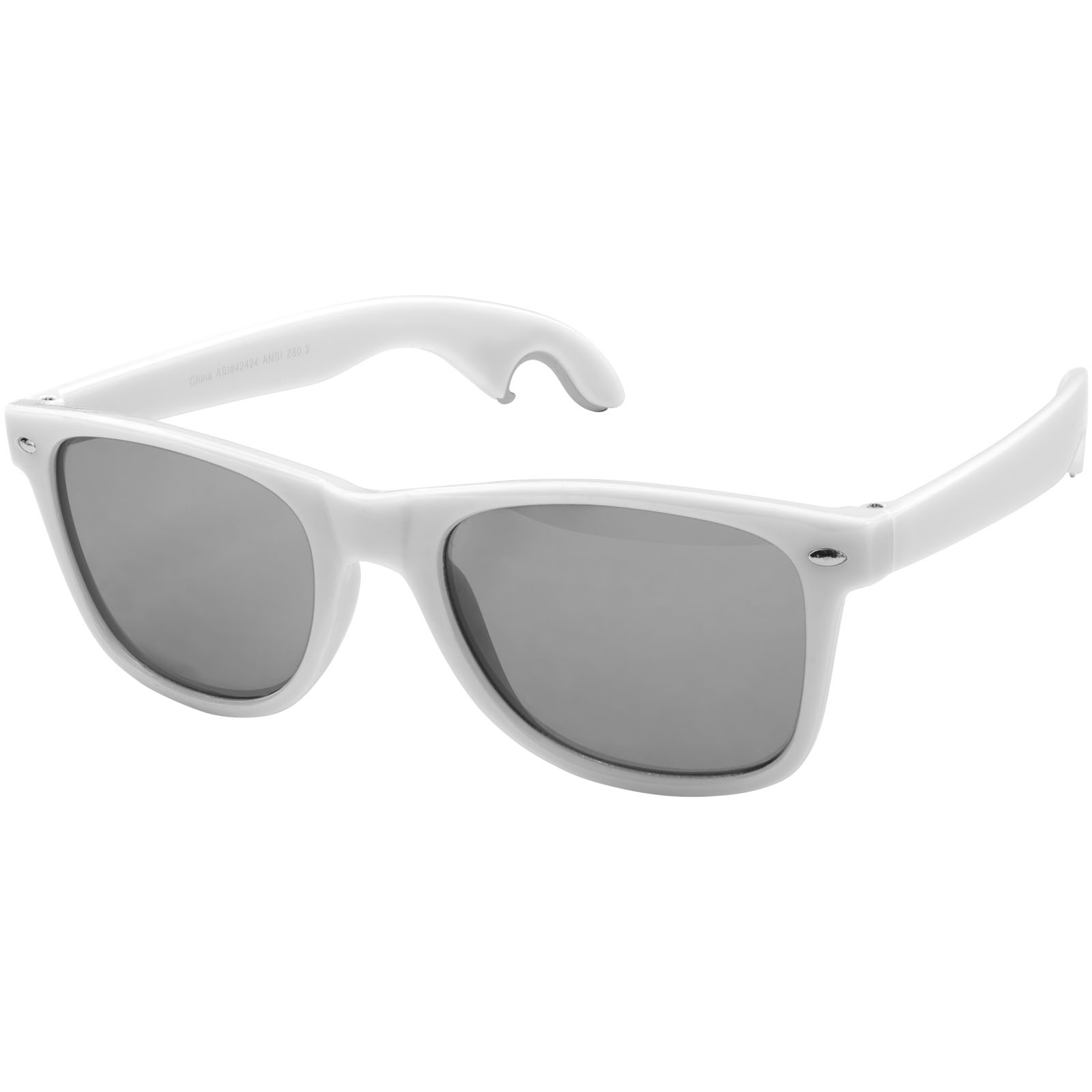 Diese nachhaltige Sonnenbrille im Retro-Design ist der ideale Werbeartikel für Sommerfestivals, Veranstaltungen oder andere sonnige Aktivitäten im Freien. Dank des recycelten PET-Kunststoffs ist die Sonnenbrille leicht und angenehm zu tragen. Diese Brille entspricht der Norm EN ISO 12312-1, hat UV400-Gläser der Kategorie 3 und ist somit die perfekte Wahl für den Schutz vor hellem Sonnenlicht.