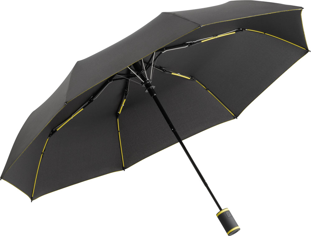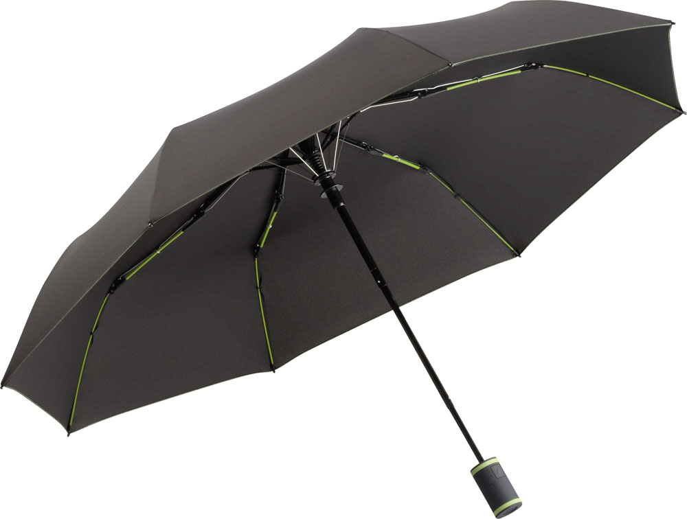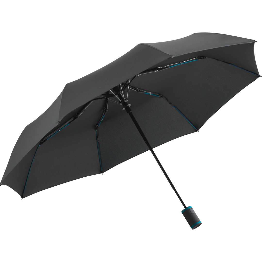 Der Werbeartikel Taschenschirm FARE®-AC-Mini Style der Marke FARE ist ein besonders auffälliger Markenbotschafter für ihre Werbung mit ihrem Logo. Werbemittel wie der Artikel Taschenschirm FARE®-AC-Mini Style setzen sich wirkungsvoll in Szene, sind auffällig und ausgezeichnet in Qualität und Verarbeitung. Stylischer Automatik-Taschenschirm in Anthrazit mit farbigen Elementen. Komfortable Automatik-Funktion zum schnellen Öffnen, hochwertiges Windproof-System für eine maximale Gestell-Flexibilität bei stärkeren Windböen, flexible Fiberglasschienen, ansprechendes Design durch farbige Schienen, Griffringe und Nähte, Soft-Touch-Griff mit Auslösetaste und Werbeanbringungsmöglichkeit, komfortables Futteral mit farbigen Nähten und farblich passender elastischer Zugkordel. Auch als weiterer Taschenschirm (Art. 5083, 5483), Midsize-Schirm (Art. 4783) und als Gästeschirm (Art. 2383) erhältlich.Schirm-Durchmesser: 94 cm