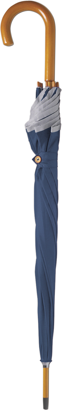 23 inch Regenschirm aus 190T Polyester. Stock, Spitzen und Krone aus Holz. Stangen aus schwarz überzogenem Metall. Gebogener Griff aus Holz in Natur-Finish. Automatische Öffnung, manuelle Schließung.