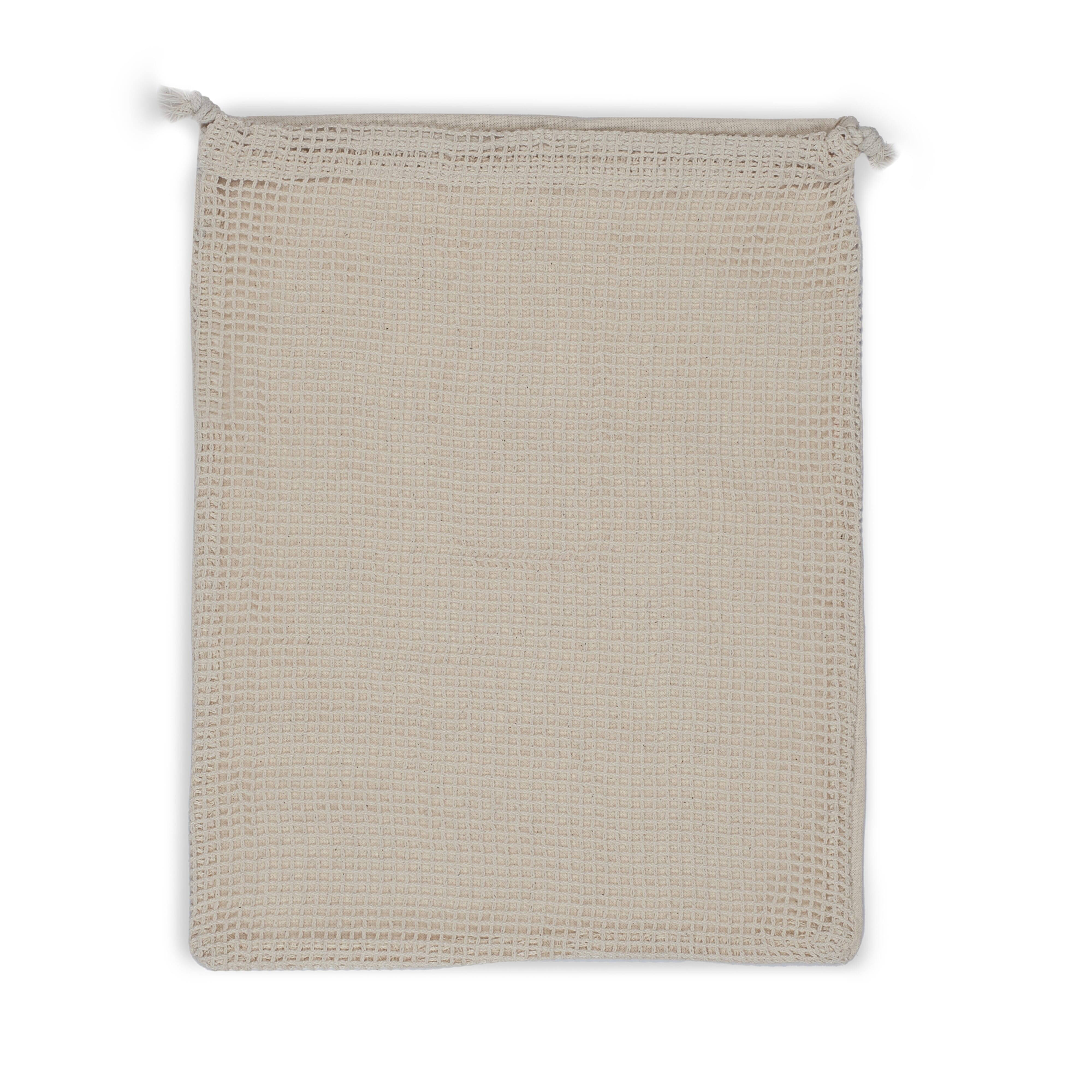 Reduzieren Sie die Anzahl der Plastiktüten im Supermarkt, indem Sie Ihren eigenen Lebensmittelbeutel verwenden. Dieser ungebleichte Baumwollbeutel mit Netz ist sehr gut für Obst und Gemüse geeignet. Verwenden Sie ihn immer wieder und wenn er schmutzig ist, waschen Sie ihn einfach bei niedrigen Temperaturen (könnte einlaufen).