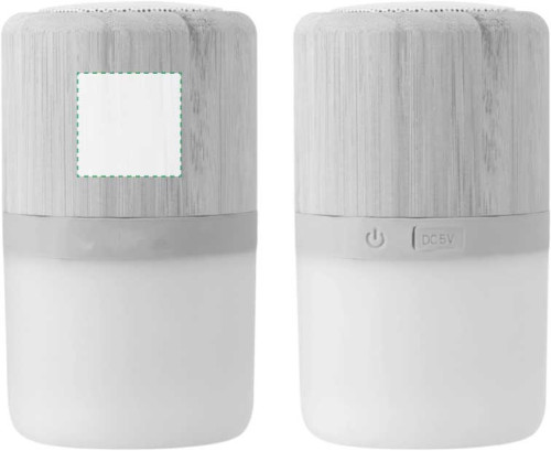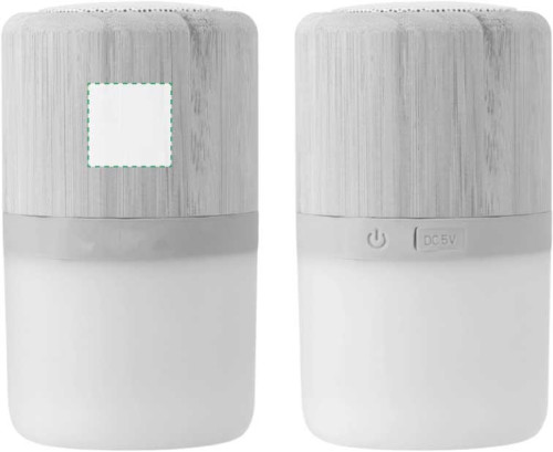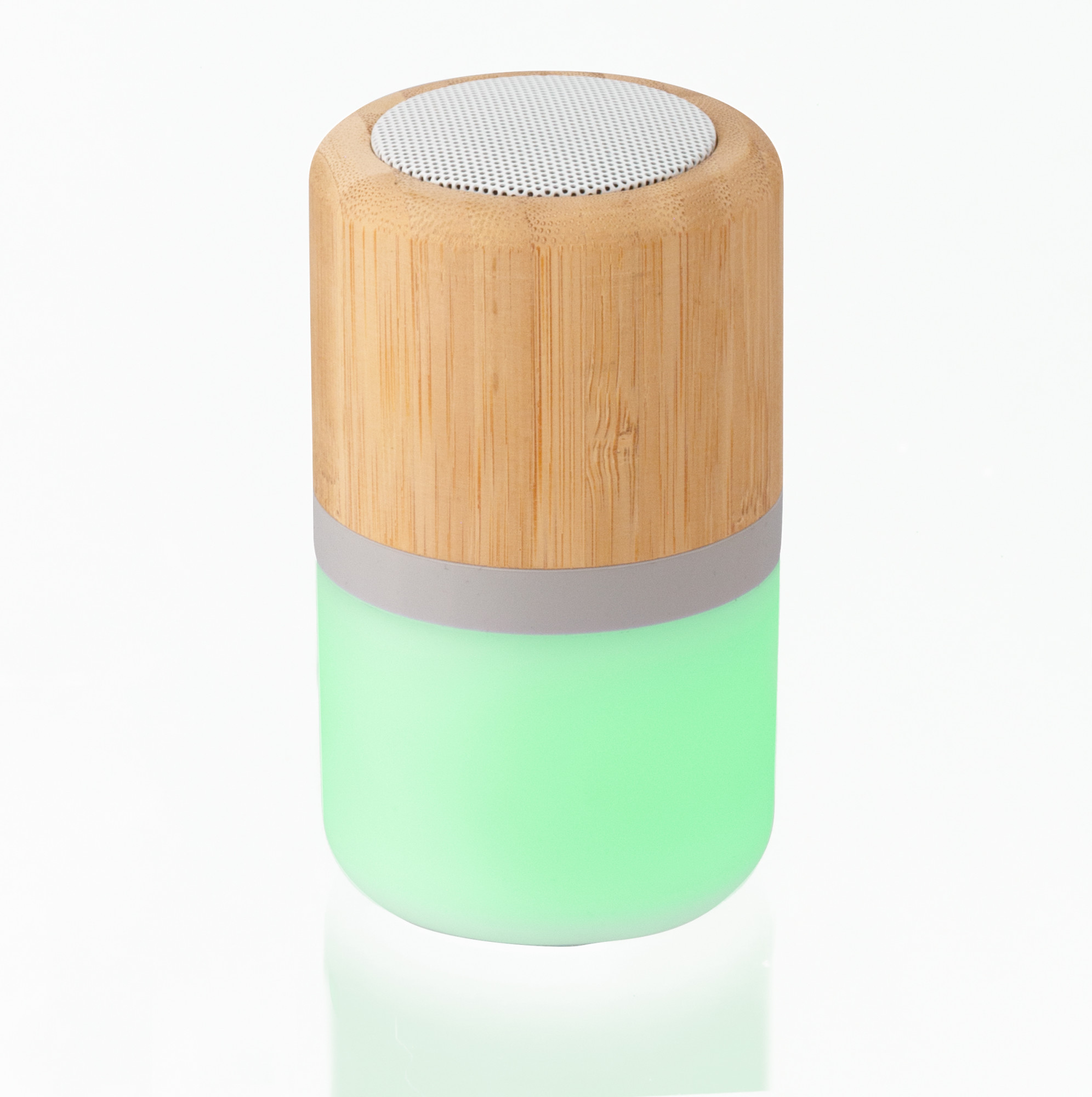 Stylischer Wireless-Lautsprecher aus ABS und Bambus mit mehrfarbiger Beleuchtung. Der 3-W-Lautsprecher hat einen wiederaufladbaren 300-mAh-Akku. Akkulaufzeit bis zu 3 Stunden. Inklusive Kabel.