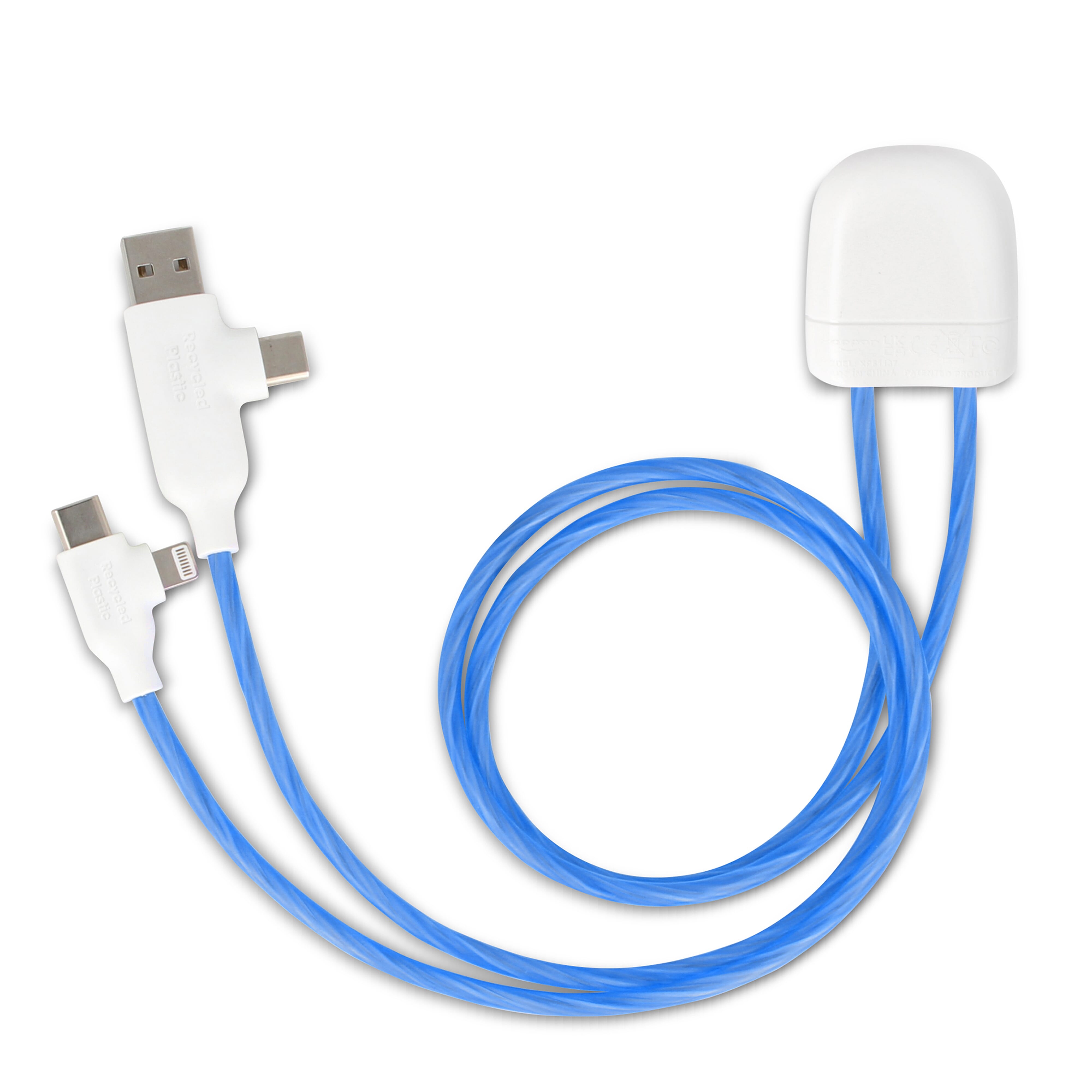 Die Xoopar Light up Ladekabel ist 2x 50cm lang, perfekt für nahtloses Laden und CarPlay-Funktionalität. Dualer Ein-/Ausgang, bis zu 27W Schnellladen. LED-Geschwindigkeit zeigt die Ladezeit an. Aus recyceltem Kunststoff.
